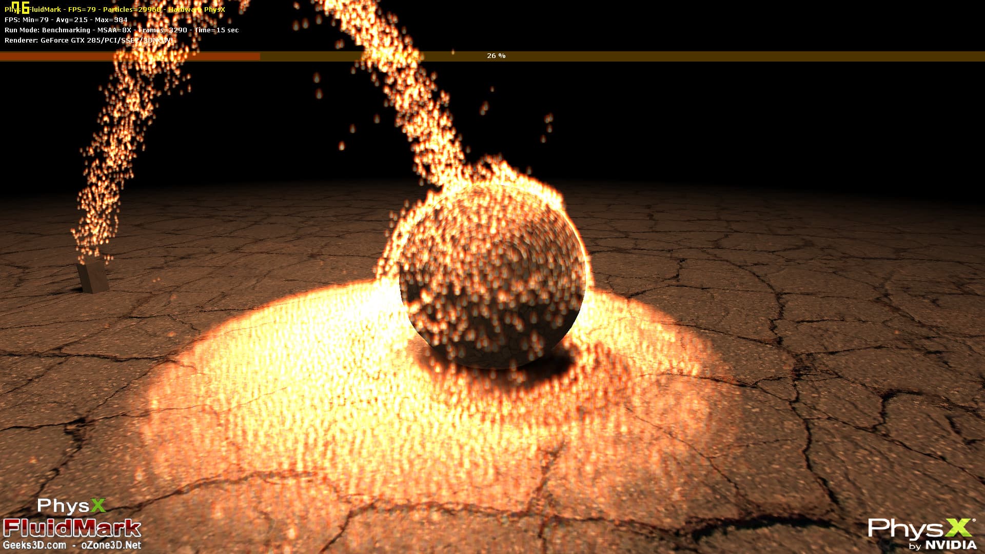 Приложение использует OpenGL для графики, аппаратная поддержка PhysX не обязательна, эффект работает и на CPU. Мы не дождались новой версии бенчмарка, которая должна получить поддержку многопоточности на CPU, и поэтому стоит учесть возможность большей производительности CPU варианта при распараллеливании работы на все ядра центрального процессора.