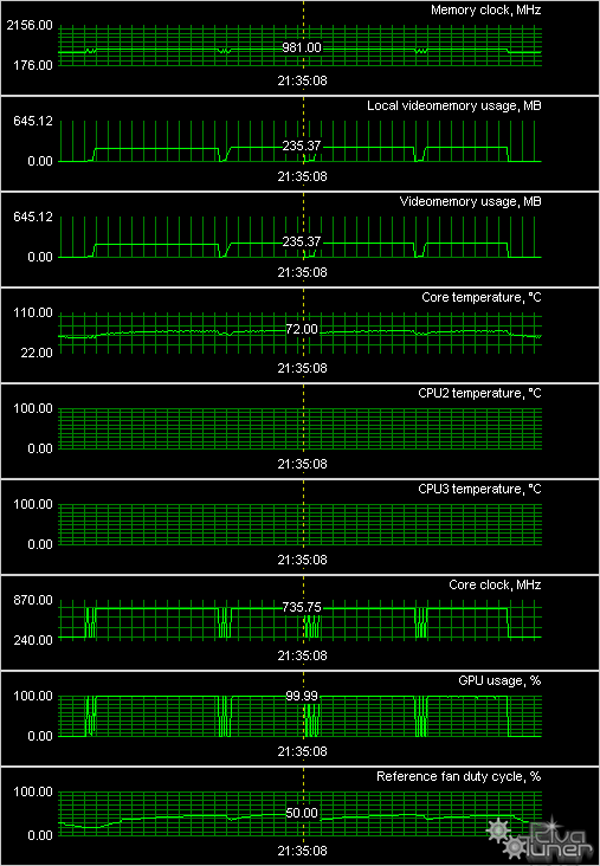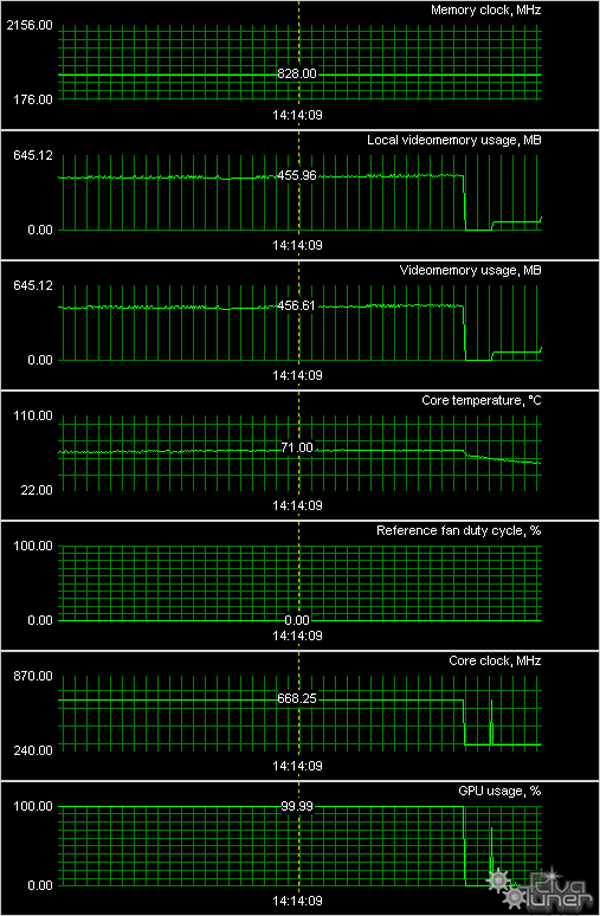 Мы провели исследование температурного режима с помощью утилиты RivaTuner (автор А. Николайчук AKA Unwinder) и получили следующие результаты: