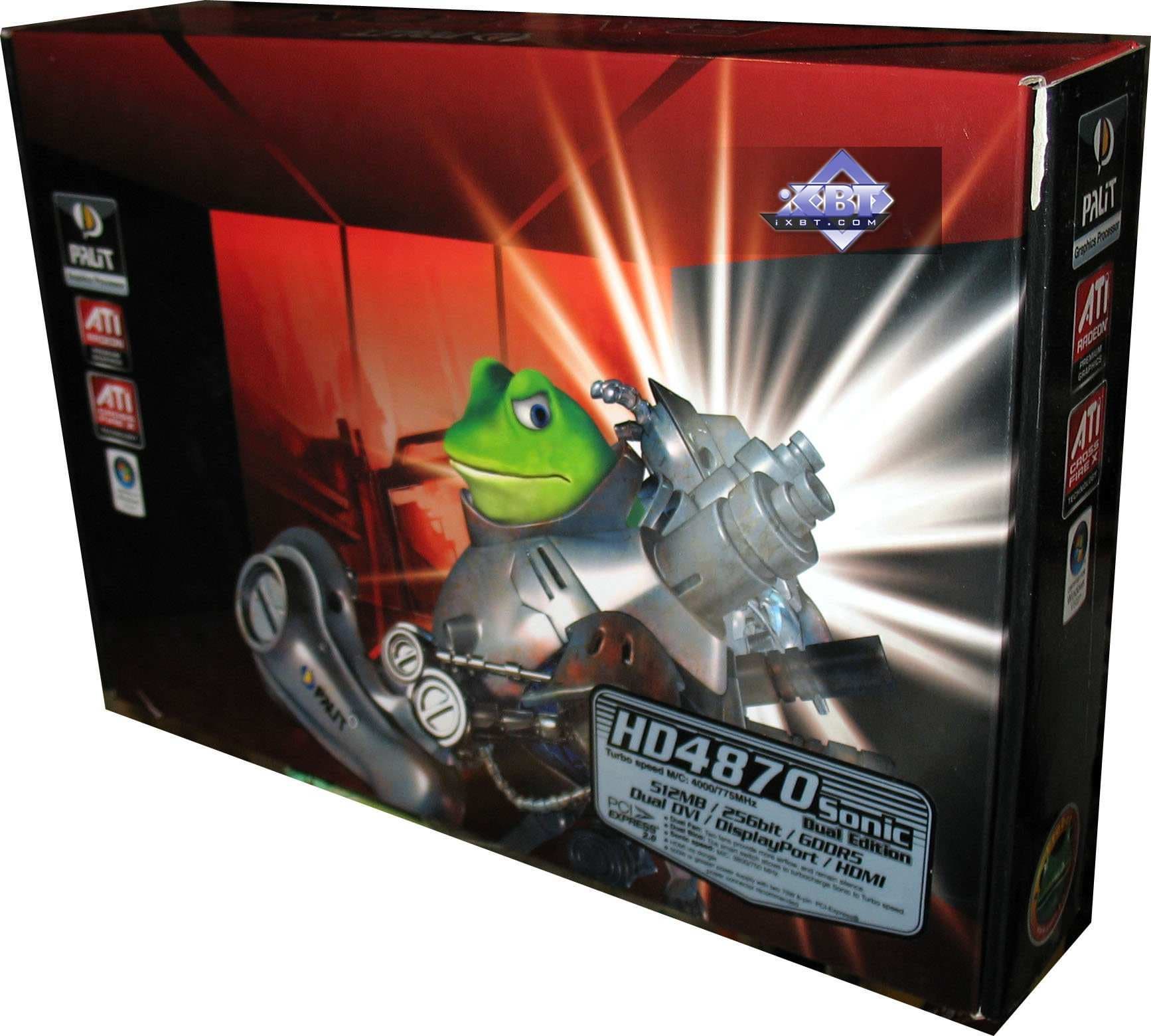 Palit RADEON HD 4870 Sonic 512MB PCI-E — очень удачный продукт с точки зрения производительности. А также удачная компоновка PCB, расположение гнезд для дополнительного питания. Минус — бедный комплект. А также появились сведения, что кулер ведет себя очень странно на разных платформах. Где-то шумит (высокие обороты), где-то нет (низкие обороты). Причину сего уникального явления пока найти не удалось.