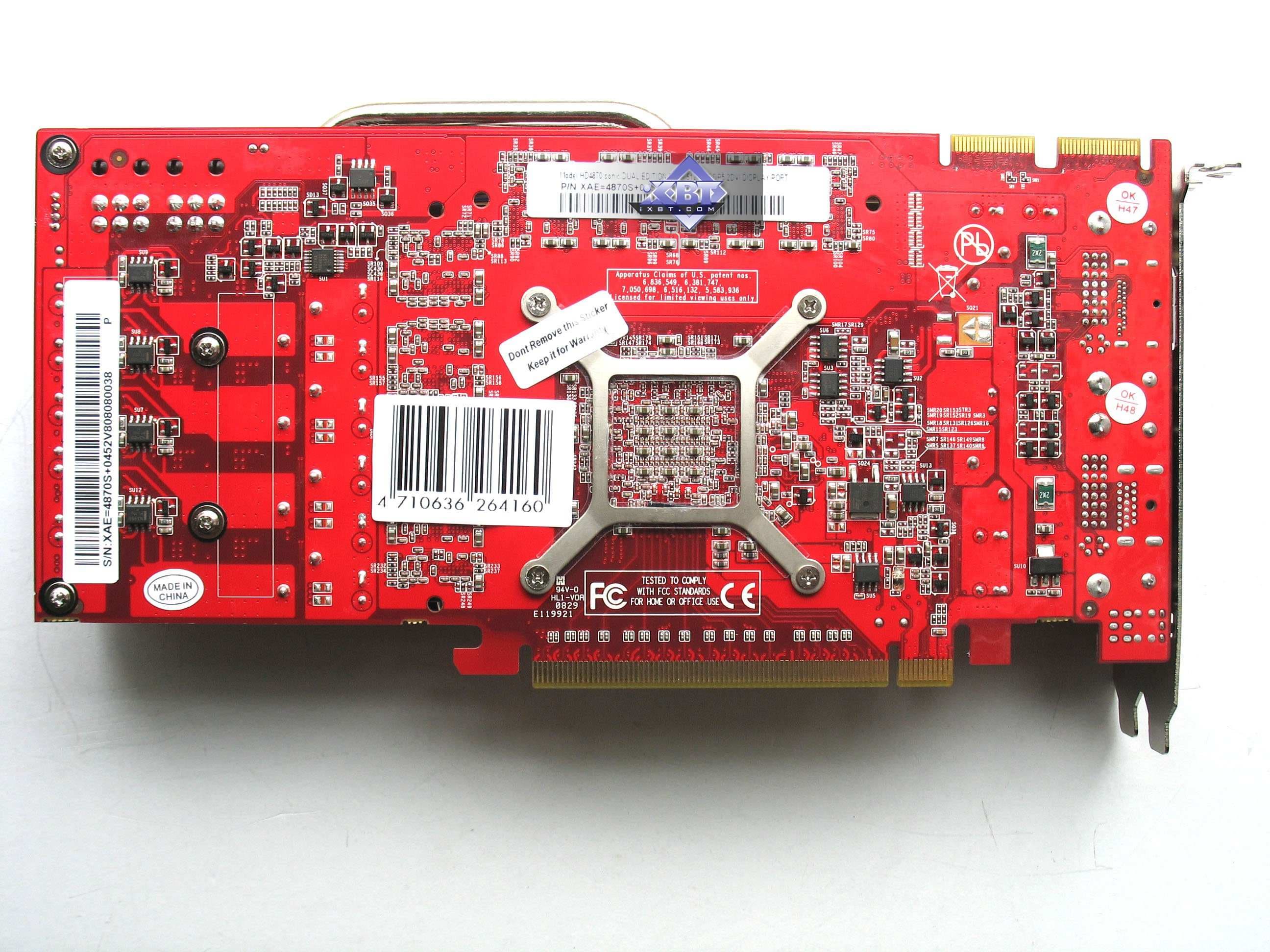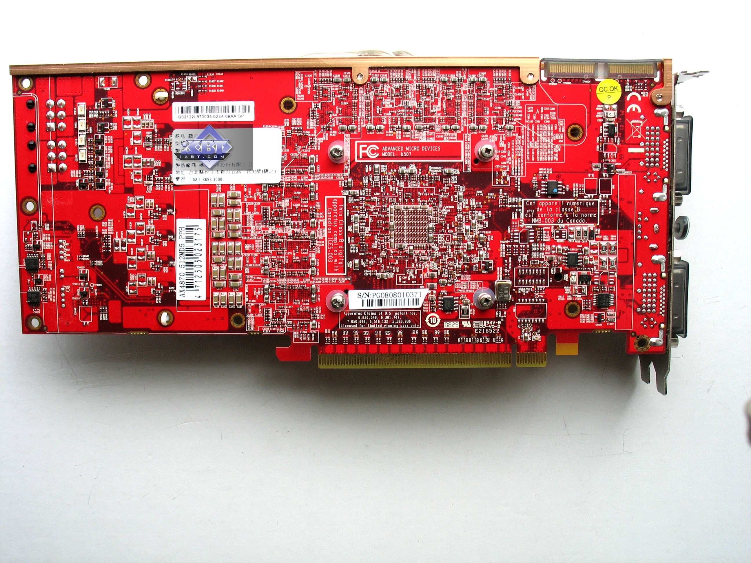 | Каждая карта имеет по 512 МБ памяти GDDR5 SDRAM, размещенной в 8 микросхемах на лицевой стороне PCB Микросхемы памяти Qimonda (GDDR5). Микросхемы раcсчитаны на максимальную частоту работы в 1000 (4000) МГц. | ![]() |