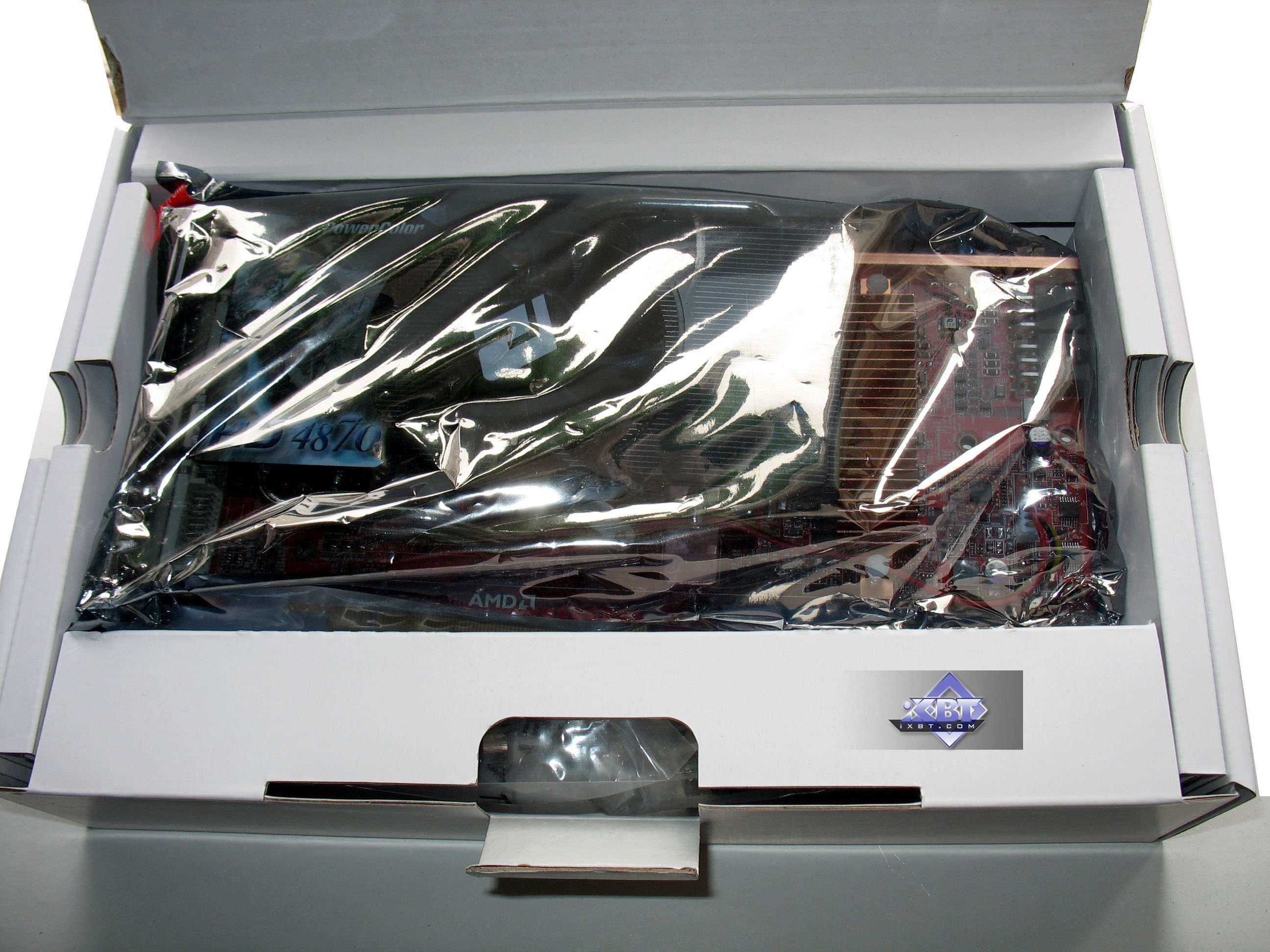 Не менее важная деталь — длина карты. Если референс-карта 4870 имеет длину выше 230 мм, и при этом разъемы для подключения дополнительного питания расположены в хвосте, и потому могут быть проблемы с установкой карты. Если кабели от БП очень жесткие и требуют также некоторого расстояния для изгиба, то в данном случае длина карты существенно уменьшена, а также разъемы перенесены на верх PCB и «смотрят» вверх, что очень удобно для подключения питания к ним. А продукт Powercolor, имеющий в своей основе reference-карту, обладает таким недостатком в виде неудобства подключения питания из-за длины карты.