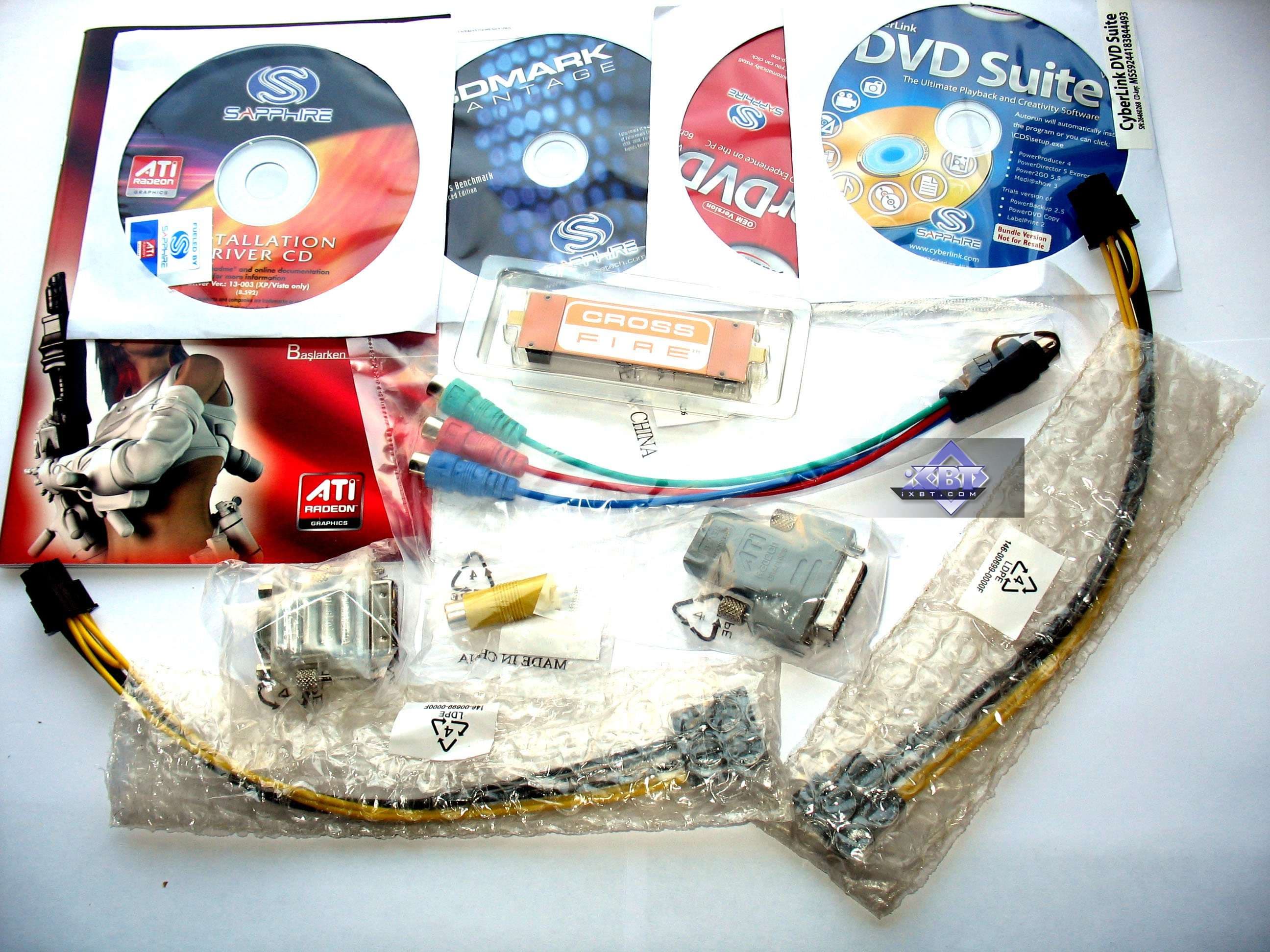 Базовый комплект поставки должен включать в себя: руководство пользователя, диск с драйверами и утилитами, переходник-адаптер DVI-to-VGA, мост CrossFire, DVI-to-HMDI адаптер, адаптер компонентного вывода (TV-out), а также разветвитель внешнего питания. Ниже мы покажем, что предлагается к каждой карте дополнительно.
