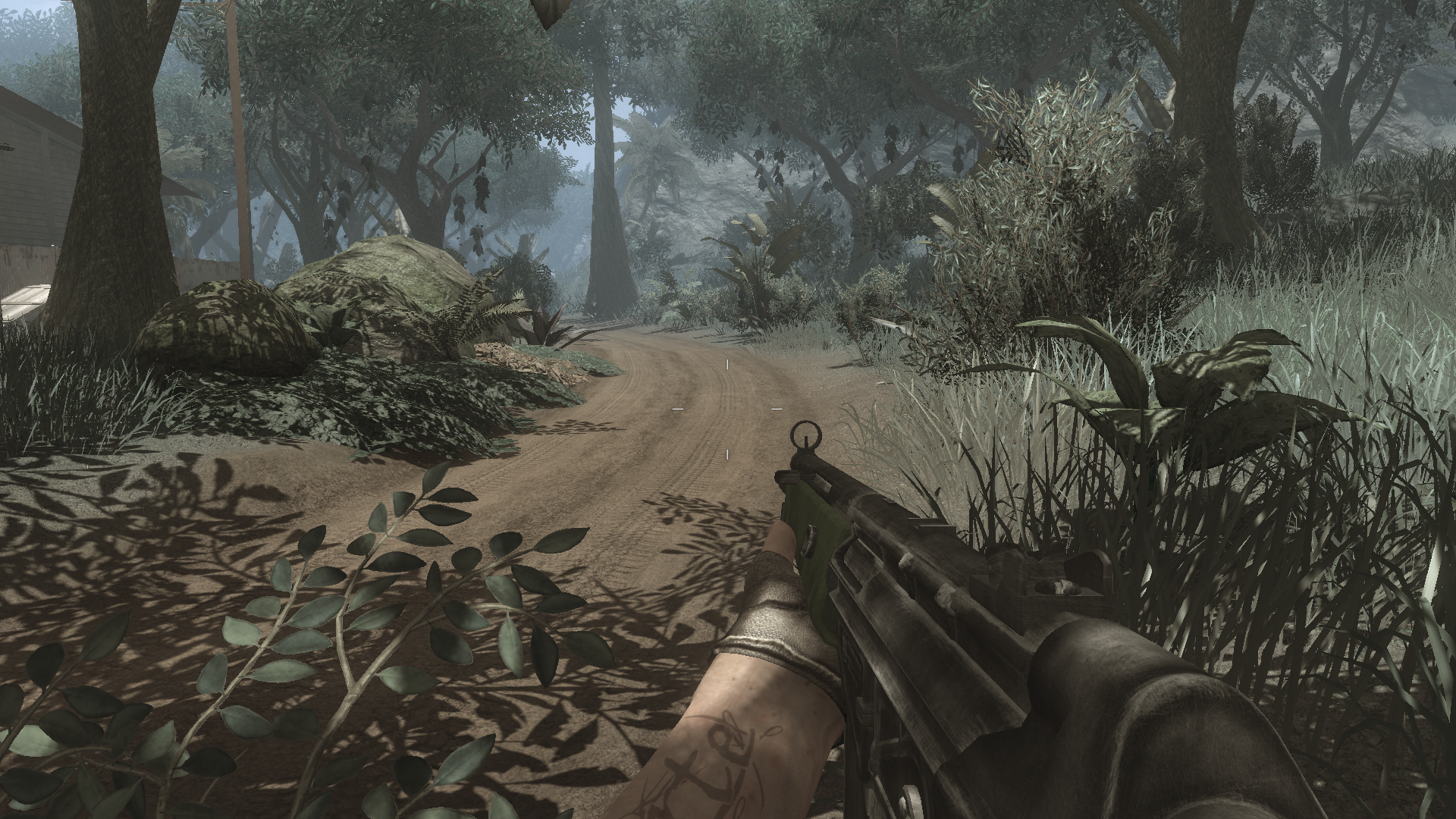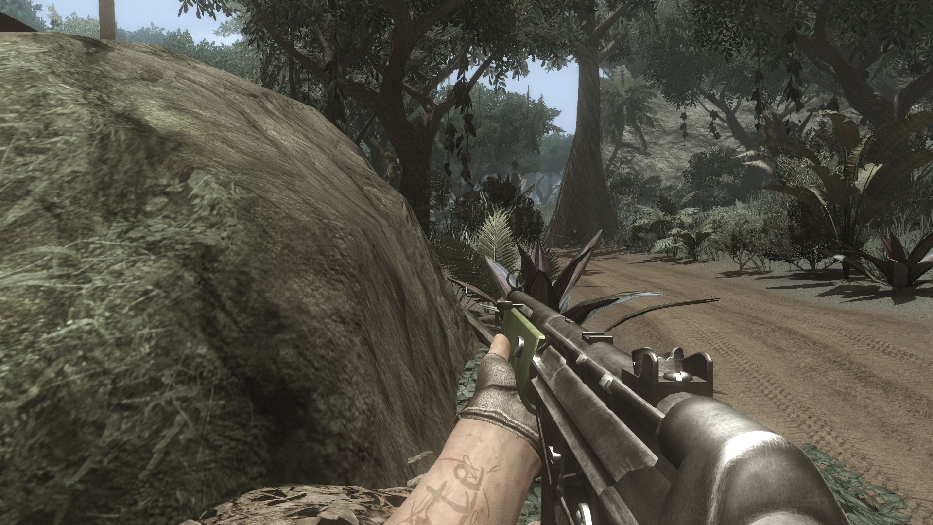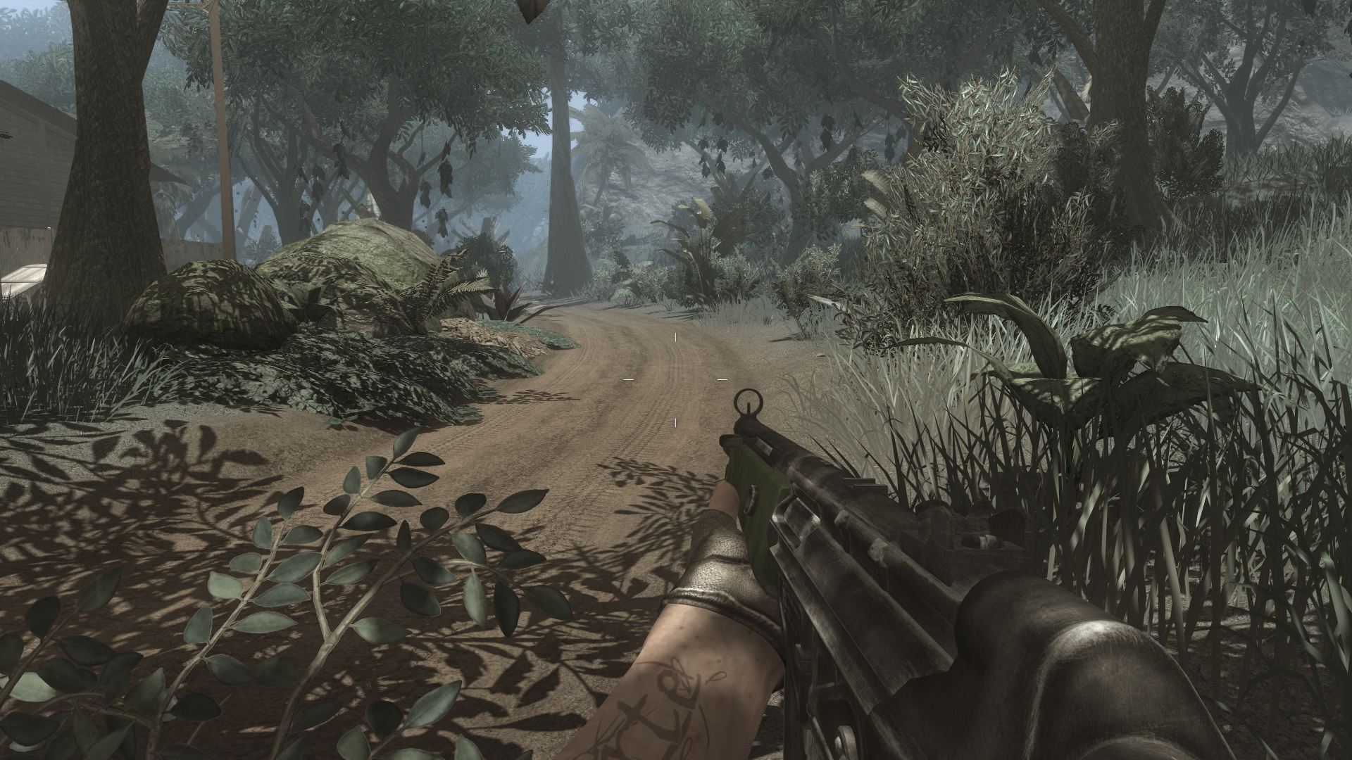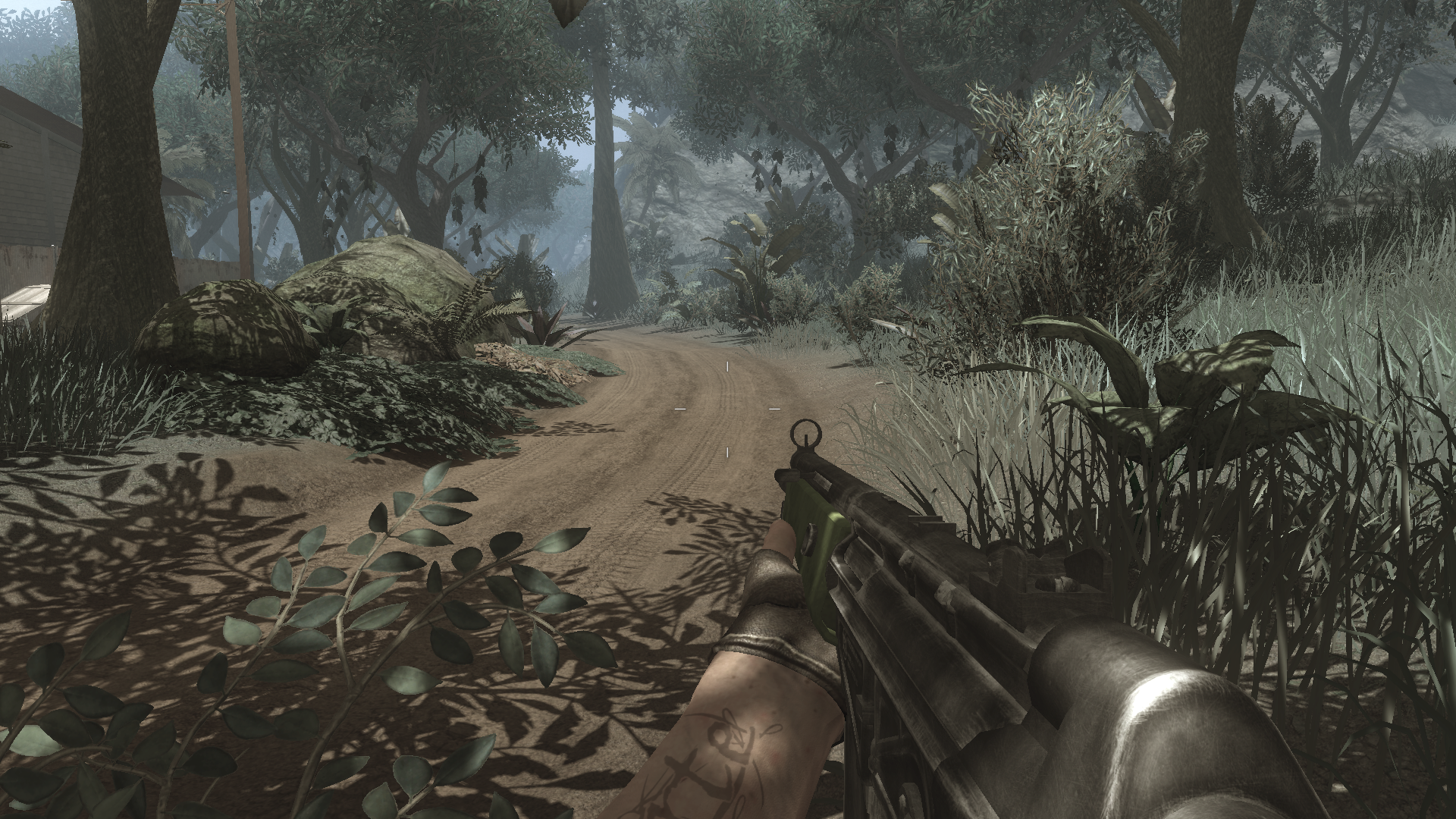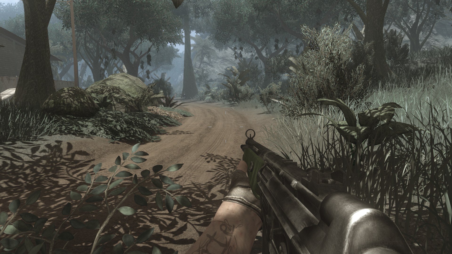 А вот здесь разница есть, и заметная — хорошо видна на листьях поперёк изображения внизу. Но не потому, что GPU виноваты, а скорее из-за драйверов. Странным образом на видеокартах AMD в Far Cry 2 DX9 не работало форсирование адаптивного сглаживания, а у Geforce работал только суперсэмплинг. Так что полноценного сравнения в этом случае не получилось, форсирование адаптивного (транспарентного) сглаживания — капризная штука, и работает не всегда и не везде.
