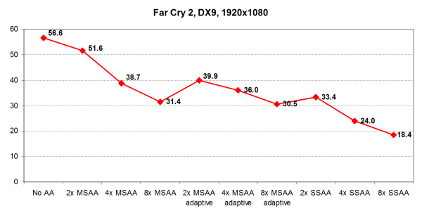 Но точно ли позволяет? Проверим падение производительности в игре Far Cry 2 (D3D9 версия) при включении различных методов полноэкранного сглаживания на RADEON HD 5870: