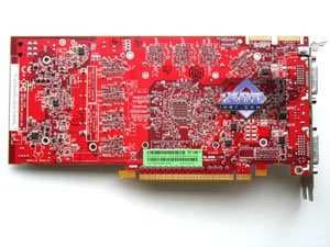 | Карта имеет 512 МБ памяти GDDR4 SDRAM, размещенной в 8 микросхемах на лицевой сторонe PCB. Микросхемы памяти Samsung (GDDR4). Время выборки у микросхем памяти 0,8 ns, что соответствует частоте работы 1250 (2500) МГц. | ![]() |