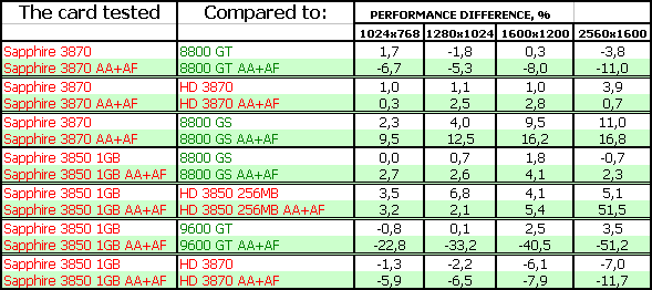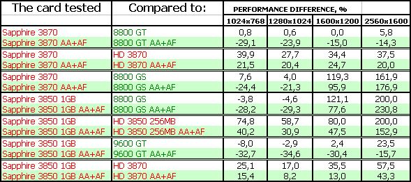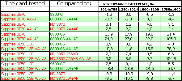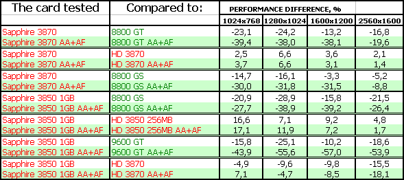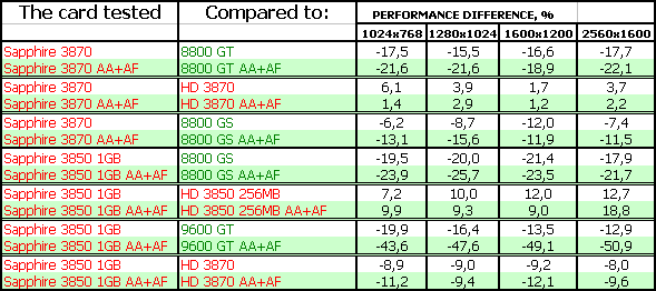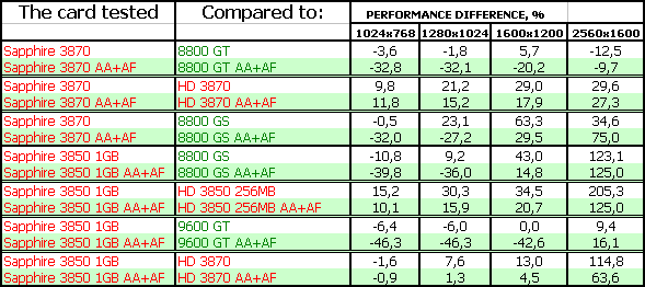 Тесты показали, что 3870-серия в целом проигрывает сопернику в лице 8800 GT, поэтому если вы найдете последний по цене меньше, чем у 3870, то вопросов даже быть не может — что покупать. Конечно 8800 GT. А вот если цены адекватны скоростям… Тут уже вопрос сложный.