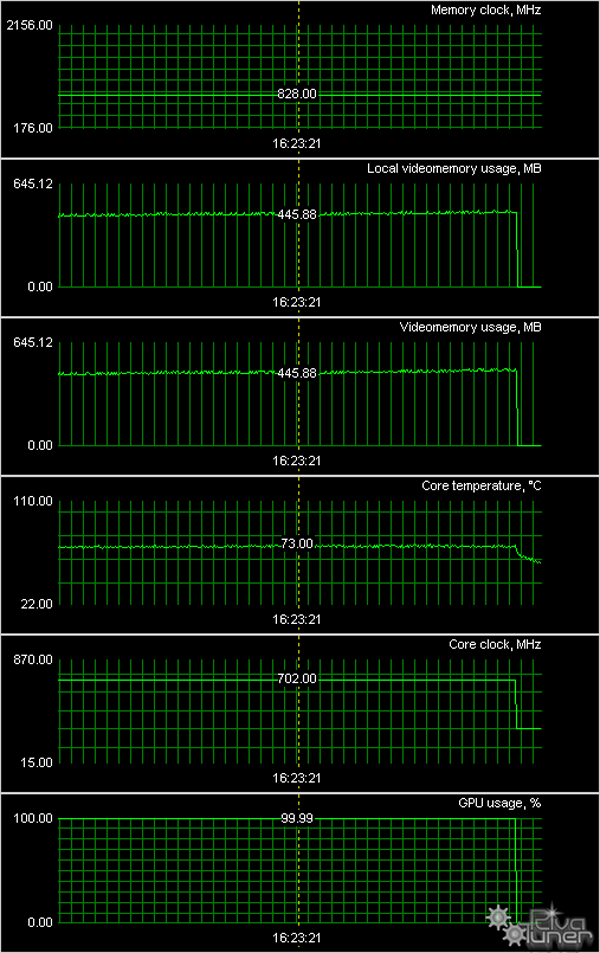 Мы провели исследование температурного режима с помощью утилиты RivaTuner (автор А.Николайчук AKA Unwinder) и получили следующие результаты: