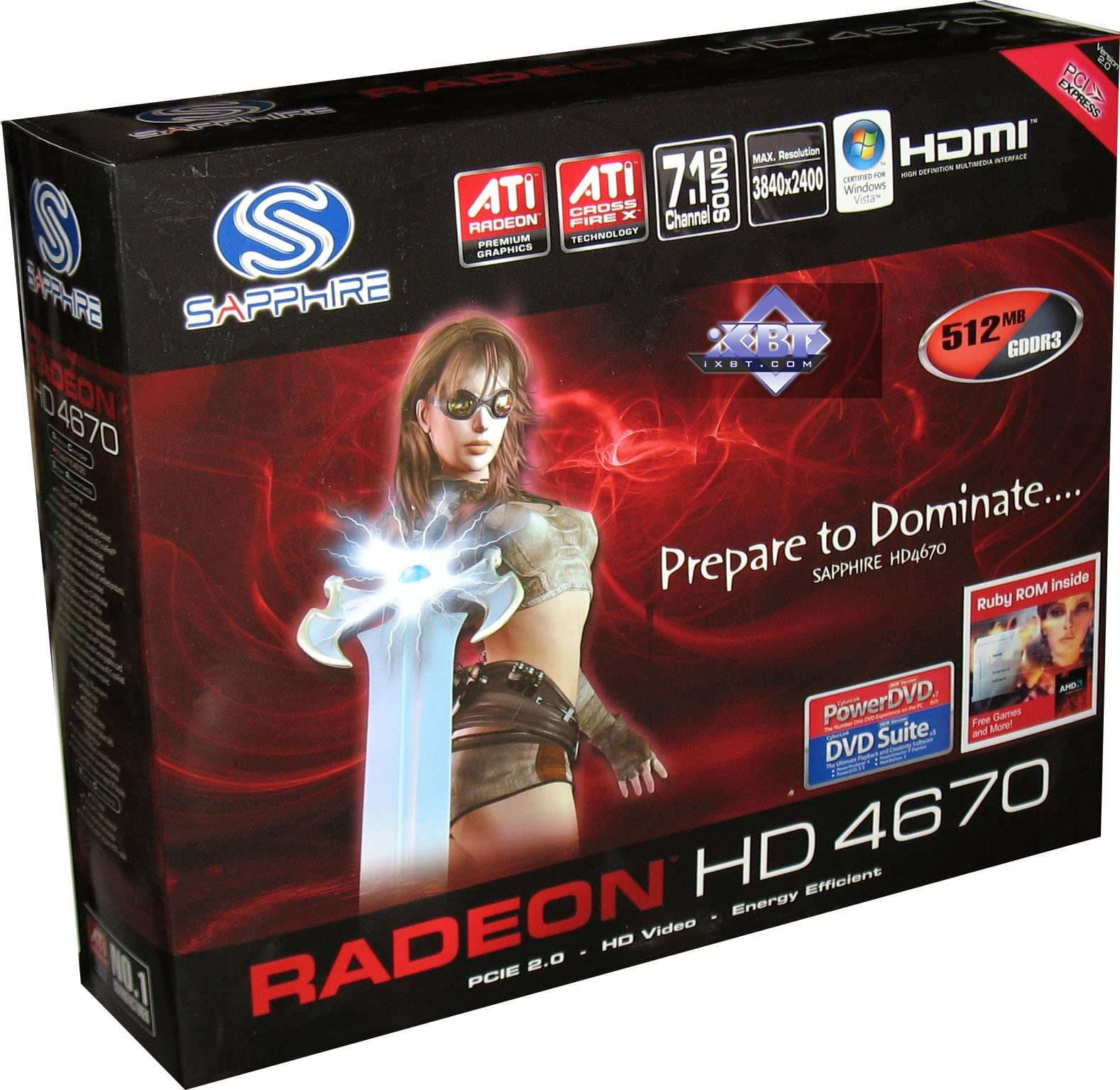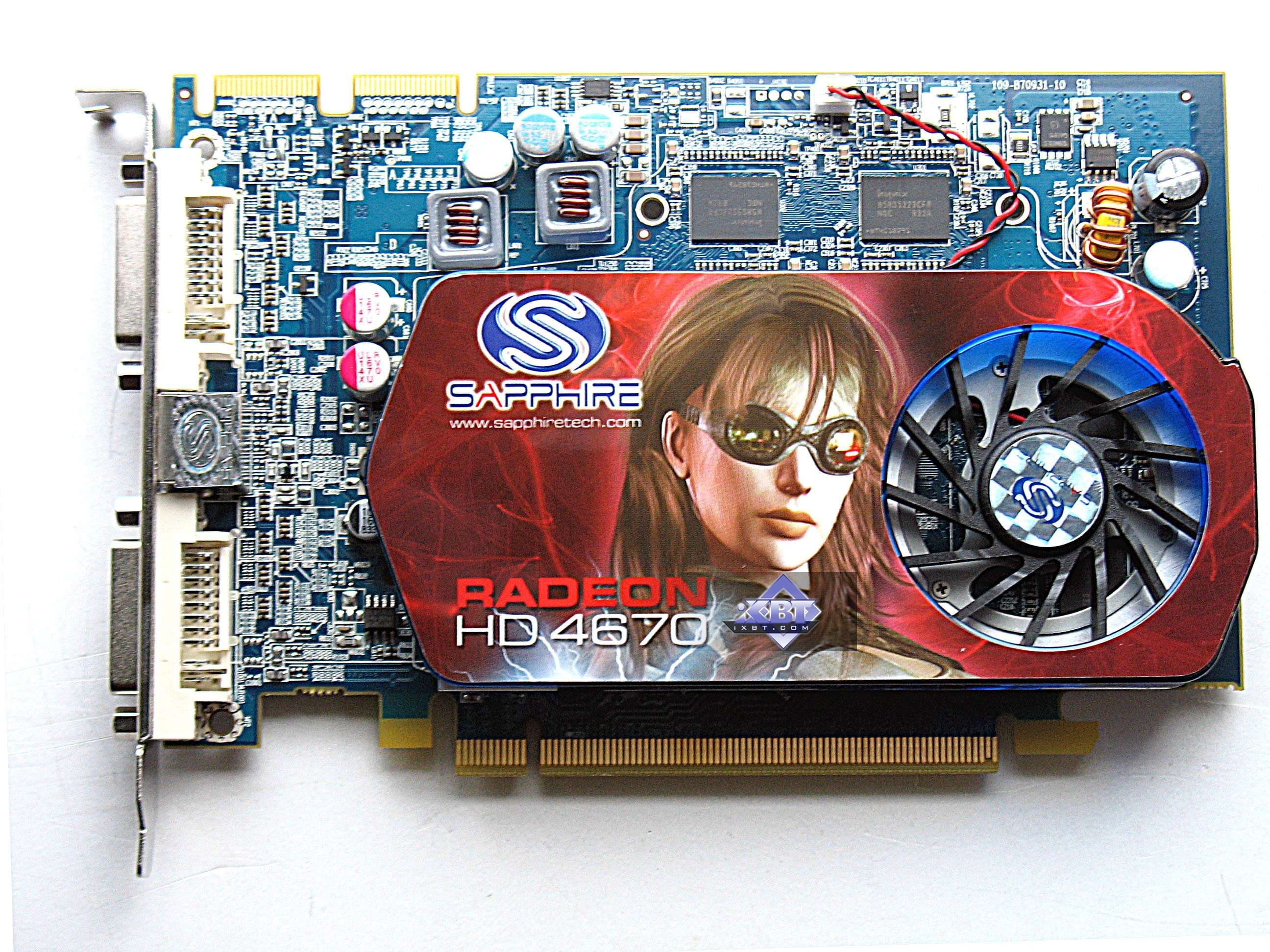 Sapphire RADEON HD 4670 512MB PCI-E — превосходный ускоритель в своей ценовой категории, мы уже также писали про такие карты. В данном варианте 4670 ничем удорожающим его стоимость, не оснащен, поэтому, наверно, будет отличным соперником аналогов от Nvidia. Комплект поставки неплохой для карты ценой всего в 75-90 долларов США.