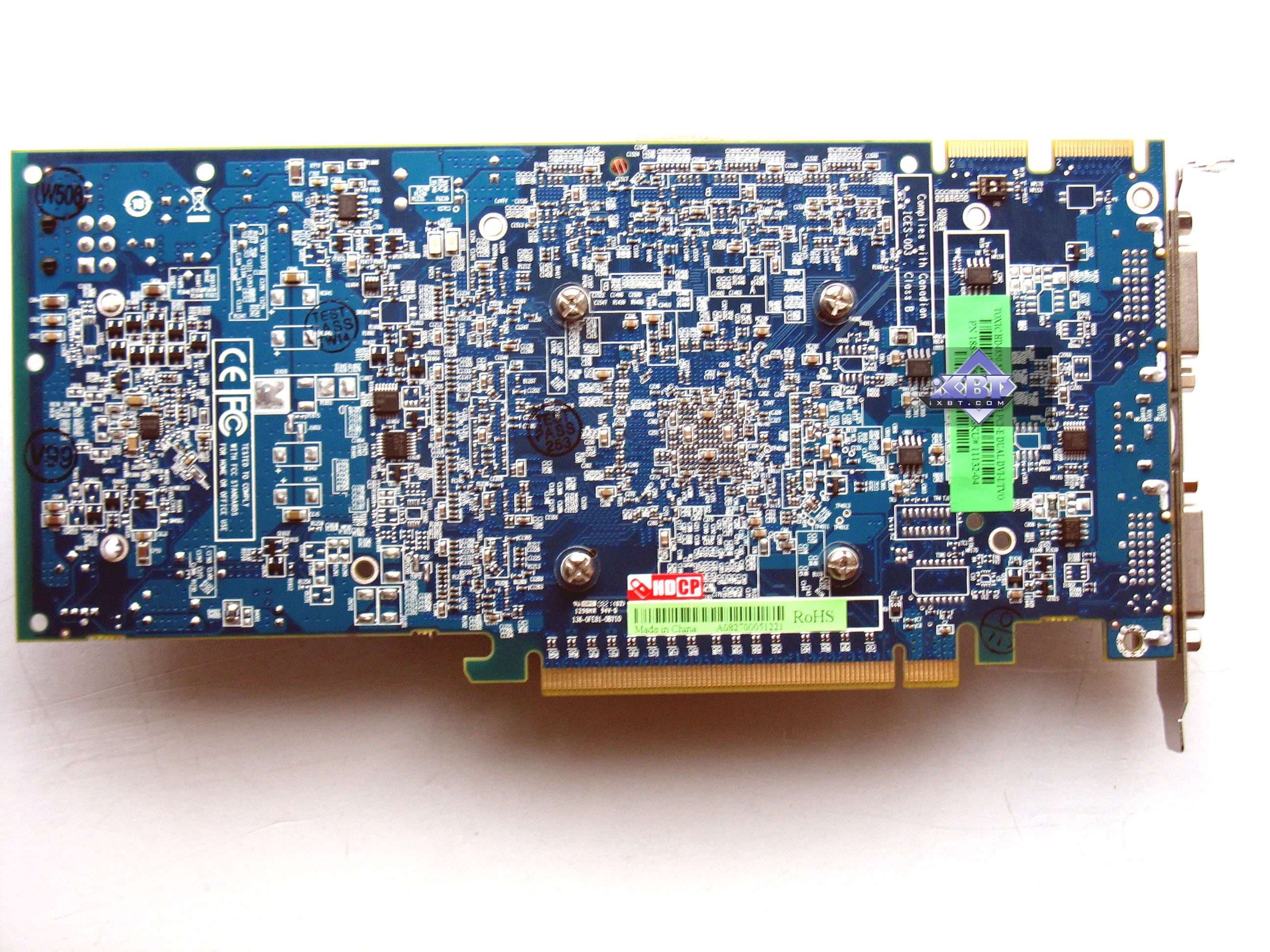 | Карта имеет 1024 МБ памяти GDDR3 SDRAM, размещенной в 8 микросхемах на лицевой стороне PCB Микросхемы памяти Hynix (GDDR3). Микросхемы рассчитаны на максимальную частоту работы в 1200 (2400) МГц. | ![]() |