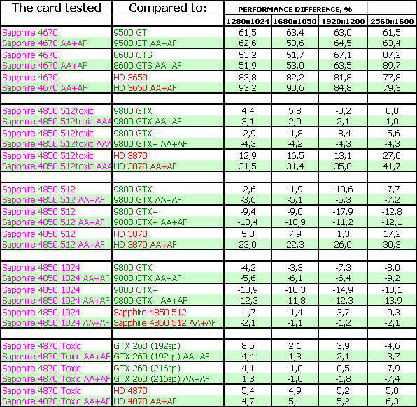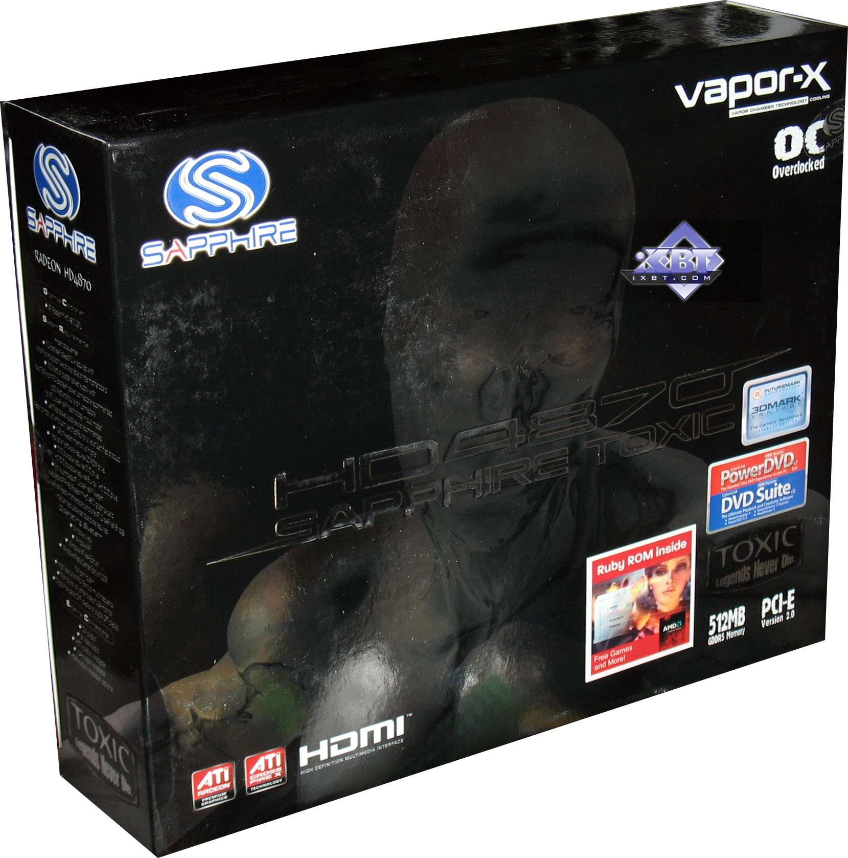 Sapphire RADEON HD 4870 Toxic 512MB PCI-E — интересное решение для своего класса. Повышенные частоты работы делают продукт очень хорошим конкурентом старому GTX 260 со 192 процессорами, однако против нового GTX 260 с 216 процессорами эта карта уже отстает по скорости, хотя не везде. Поэтому все будет решать цена. А плюсов — отличный комплект поставки, из минусов — СО может немного шуметь под сильной нагрузкой на карту.