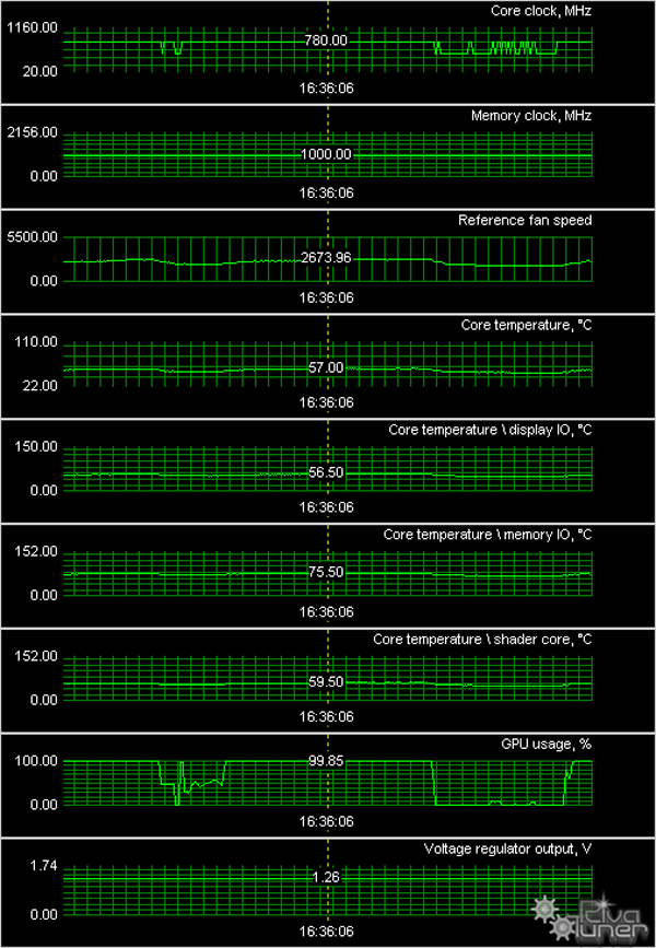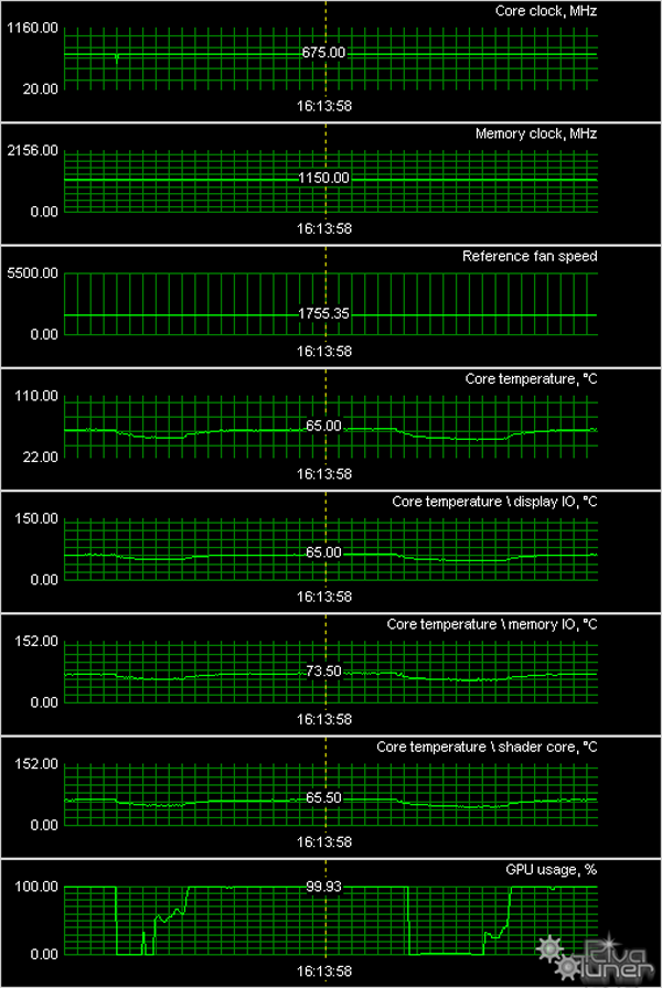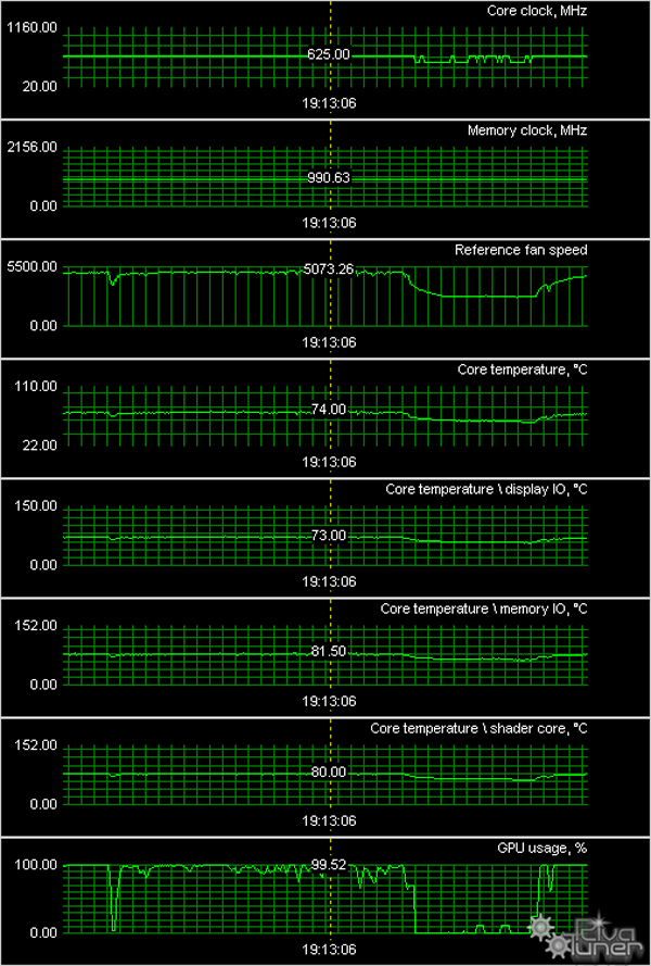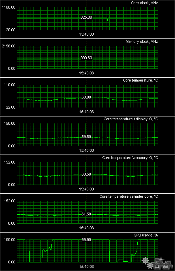 Мы провели исследование температурного режима с помощью утилиты RivaTuner (автор А.Николайчук AKA Unwinder) и получили следующие результаты: