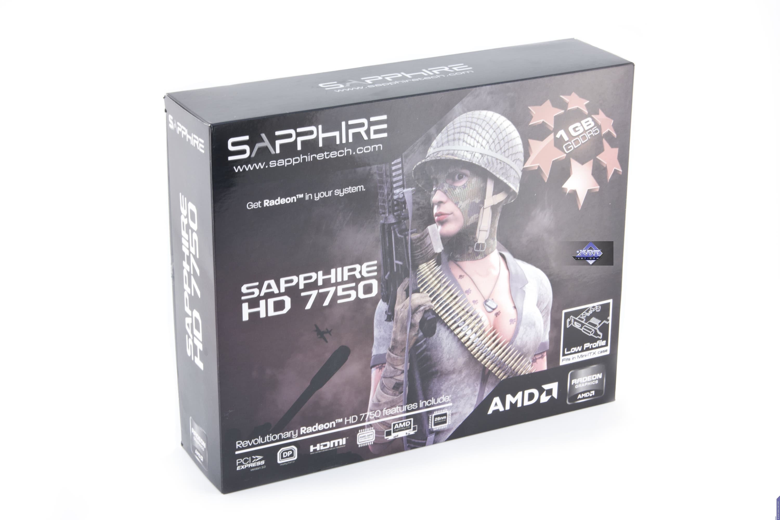 Sapphire Radeon HD 7750 Low Profile 1024 МБ 128-битной GDDR5 PCI-E — очень интересный продукт почти бюджетного уровня для тех, кому важно иметь в малогабаритном системном блоке типа баребона тихий, но приличный по производительности ускоритель, выдающий удовлетворительную скорость в низких и средних разрешениях, при этом полноценно обладающий всем богатством возможностей в 3D на сегодня.