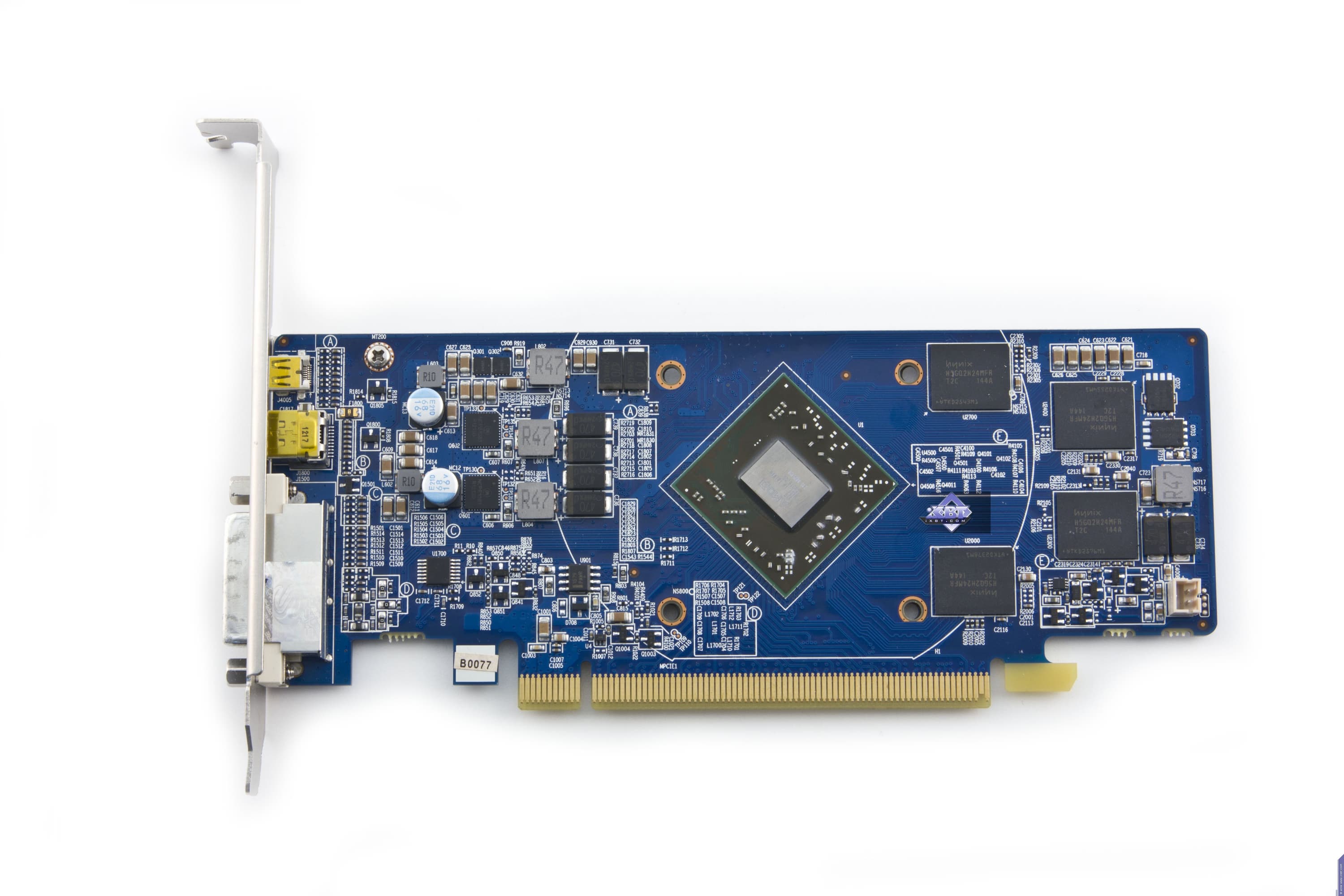 Карта имеет 1024 МБ памяти GDDR5 SDRAM, размещенной в 4 микросхемах на лицевой сторонe PCB. Микросхемы памяти Hynix (GDDR5). Микросхемы рассчитаны на максимальную частоту работы в 1250 (5000) МГц. | ![]() |