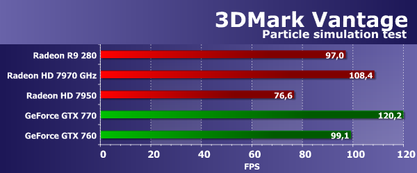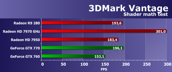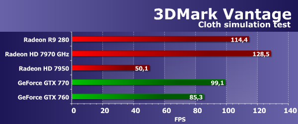 Во втором геометрическом тесте из 3DMark Vantage ситуация изменилась, но и в этот раз новая Radeon R9 280 оказалась значительно производительнее своей предшественницы из предыдущего поколения Radeon 7000. Да и HD 7970 GHz снова недалеко впереди. Вероятно, в этом тесте наблюдается упор не только в геометрическую производительность, а производительность ROP или (что логичнее) пропускную способность видеопамяти.