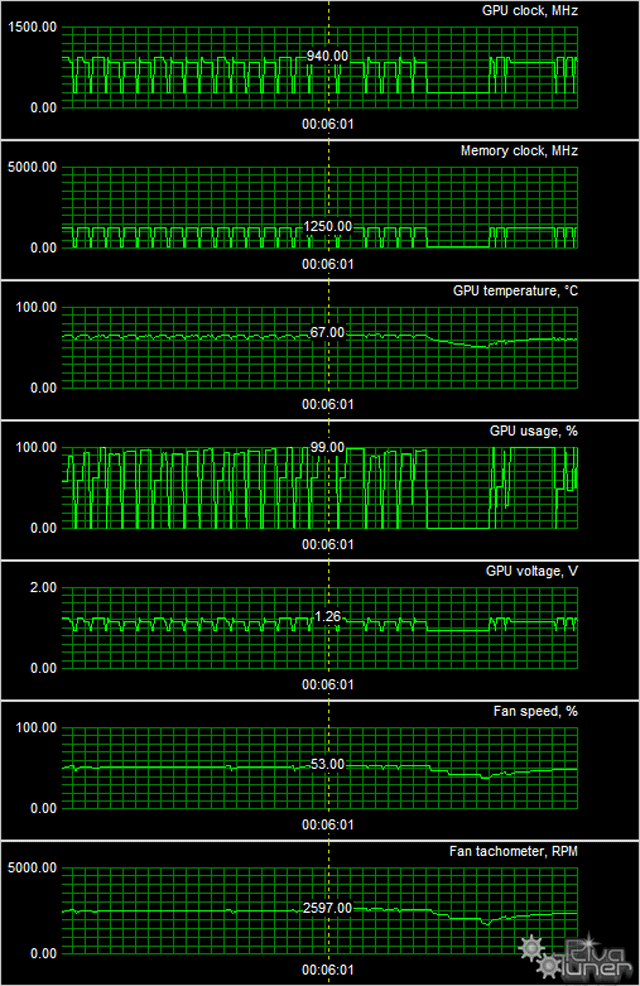 Если сравнивать новинку с конкурирующими видеокартами от Nvidia, то она показала скорость, близкую к производительности своего прямого конкурента Geforce GTX 760, уступив только более дорогой и мощной GTX 770. Для платы на чипе AMD это очень неплохой результат, ведь ранее в синтетических тестах имитации тканей и частиц из тестового пакета 3DMark Vantage, в которых активно используются геометрические шейдеры, платы Nvidia заметно опережали конкурирующие с ними модели. Feature Test 6: Perlin Noise