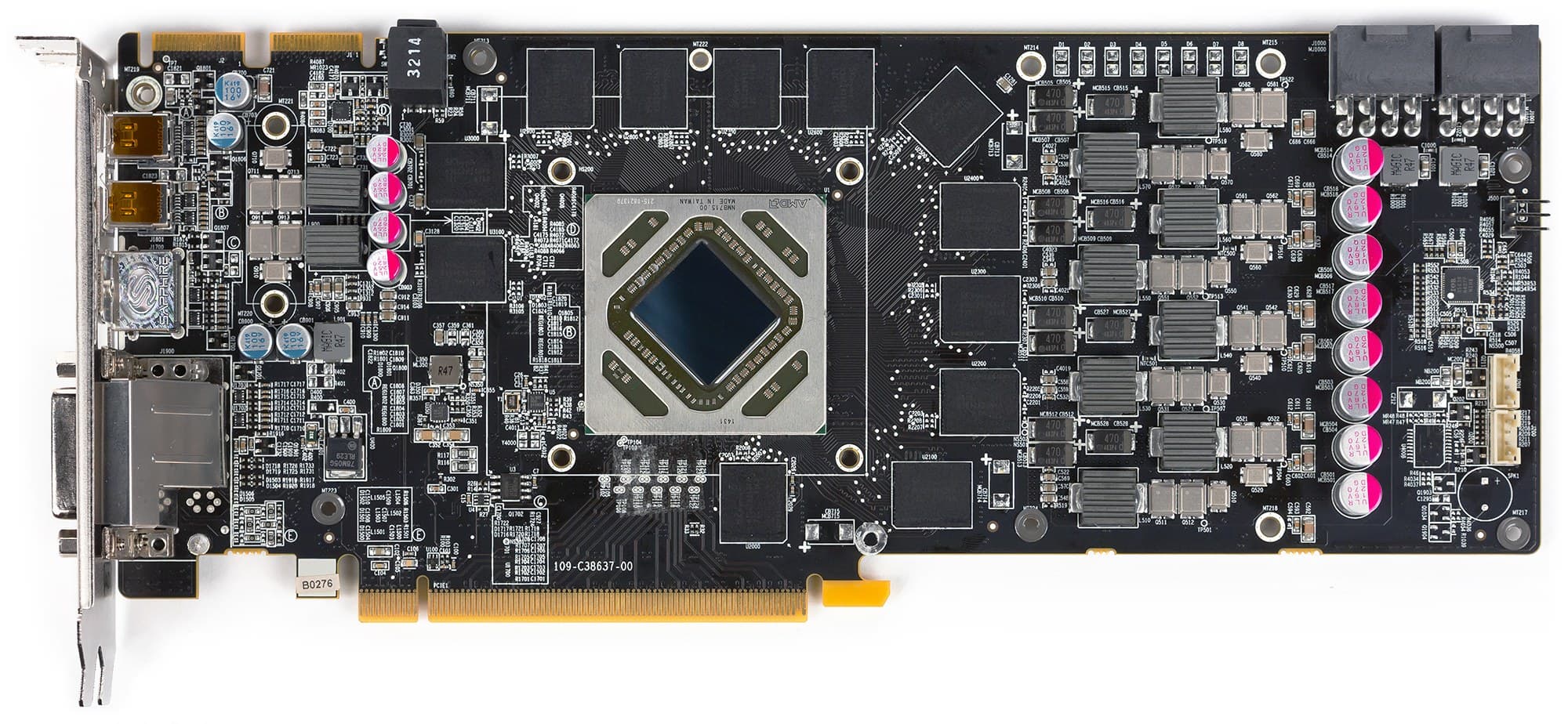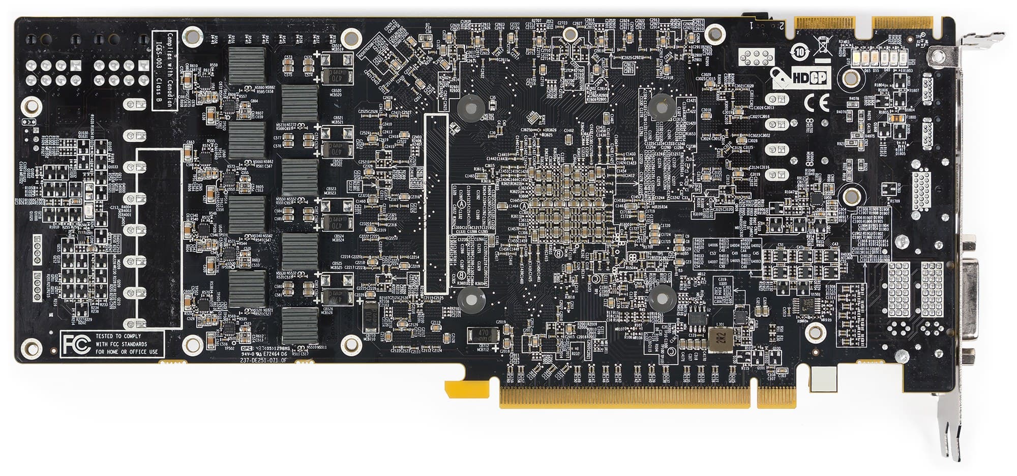 Карта имеет 3072 МБ памяти GDDR5 SDRAM, размещенной в 12 микросхемах по 2 Гбит (на лицевой стороне PCB). Микросхемы памяти SK Hynix (GDDR5). Микросхемы рассчитаны на максимальную частоту работы в 1500 (6000) МГц. | ![]() |