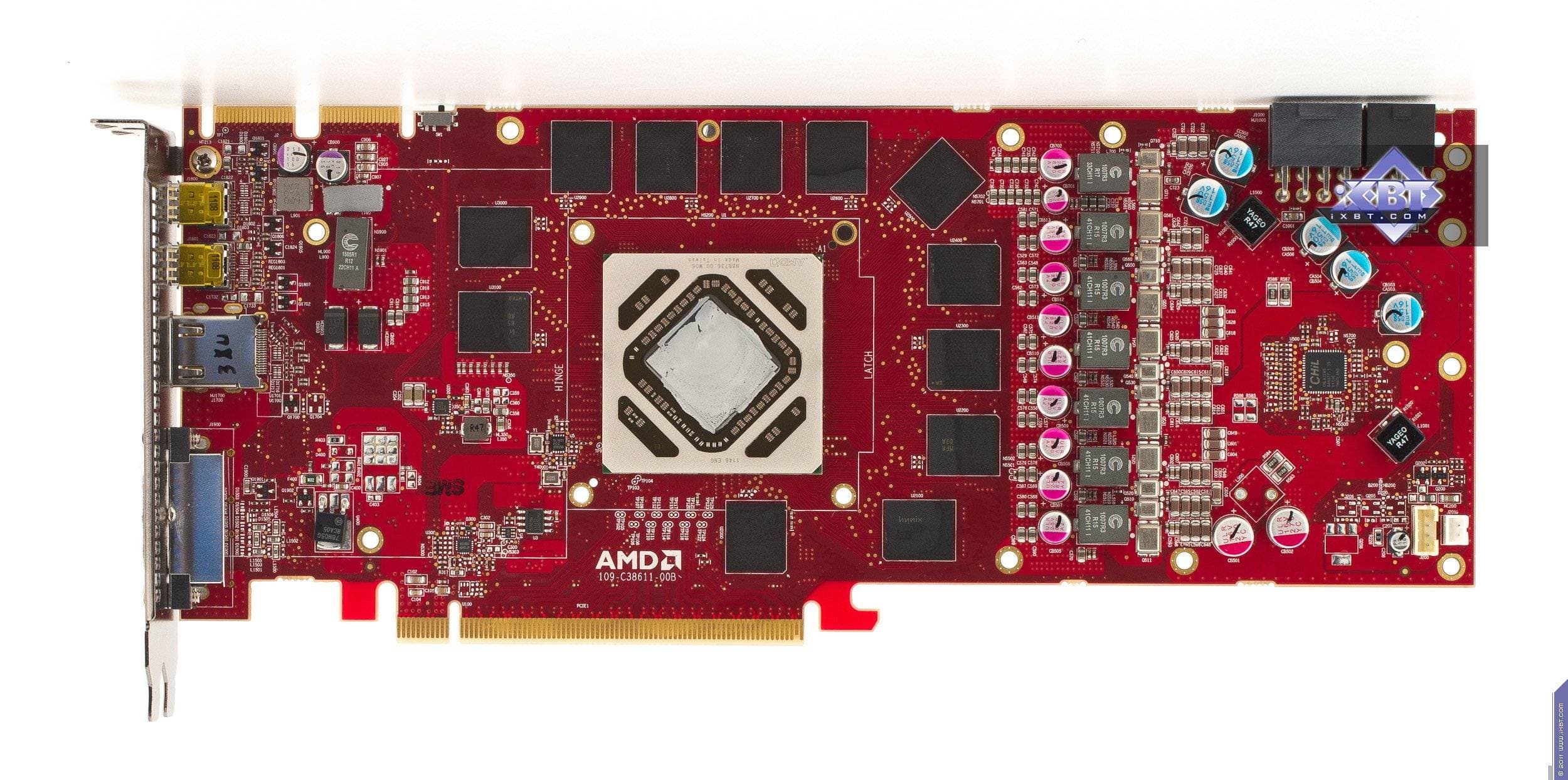 Если посмотрим на карту от XFX, то станет очевидно, что перед нами полная копия эталонного дизайна, поэтому нет нужды детально что-либо рассказывать — все подобности уже были в базовой статье.