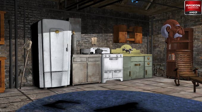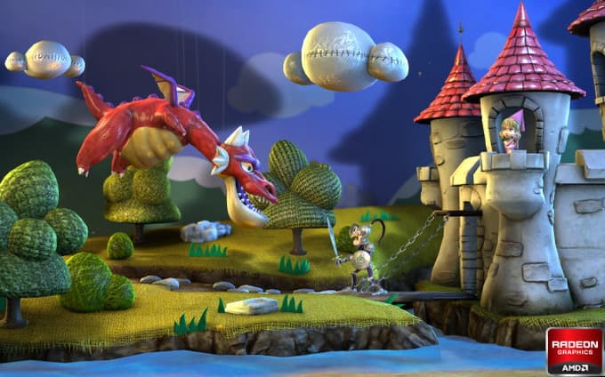 Ну и чтобы дать закипающим мозгам наших читателей отдых от столь скурпулёзного описания возможностей нового продукта компании AMD, мы наконец-то покажем что-то развлекательное — скриншот из демонстрационной программы, сделанной компанией к анонсу первых решений из семейства Southern Islands. Демка называется «Leo» и показывает забавную сказочную сценку с применением современных графических технологий: