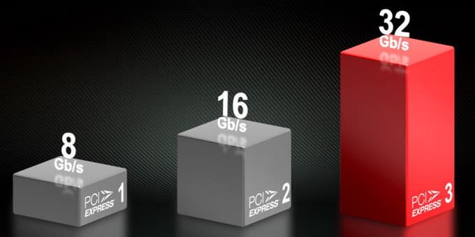 Обновленный интерфейс обладает скоростью передачи 8 гигатранзакций в секунду вместо 5 ГТ/с для версии 2.0, и его пропускная способность ещё раз выросла вдвое (до 32 Гб/с), по сравнению со стандартом PCI Express 2.0. В новой шине применяется другая схема кодирования пересылаемых по шине данных, но совместимость с предыдущими версиями PCI Express была сохранена.