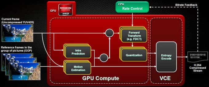 Кодирование может производиться в двух режимах: полное и гибридное (с использованием возможностей потоковых процессоров GPU). Полный режим разработан для задач, которые требуют максимальной энергоэффективности и постоянного уровня производительности. Кодирование в полном режиме на VCE быстрее реального времени и обеспечивает низкие задержки. Но есть и гибридный режим: