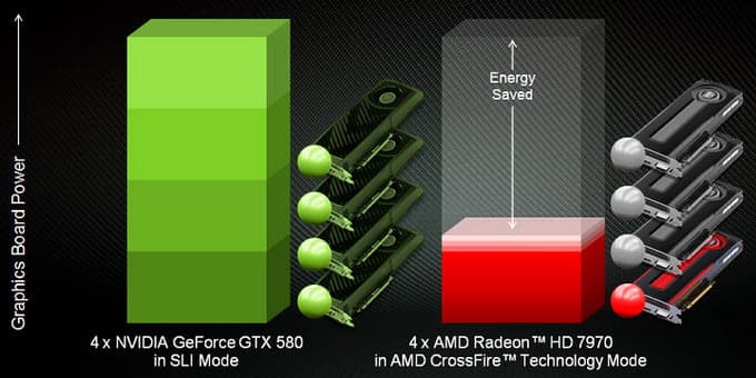 Но не только пользователи систем с одной видеокартой получат бонус от снижения шума и потребления энергии с новыми видеокартами AMD с поддержкой ZeroCore. Аналогичные улучшения ожидают и счастливых владельцев CrossFire систем на базе двух, трёх и даже четырёх GPU. Логично ведь, что в режиме отрисовки двухмерного интерфейса операционной системы все видеокарты, кроме главной, не должны бы работать вовсе? Но ведь сейчас они работают именно так!