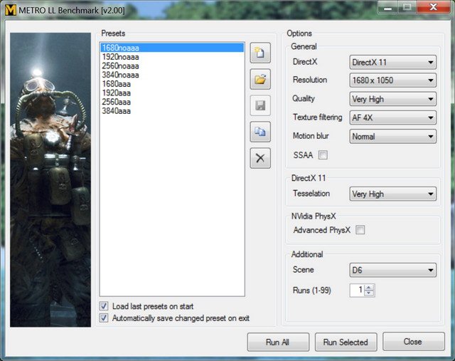 Для тестирования используется поставляемая вместе с игрой утилита бенчмарка.