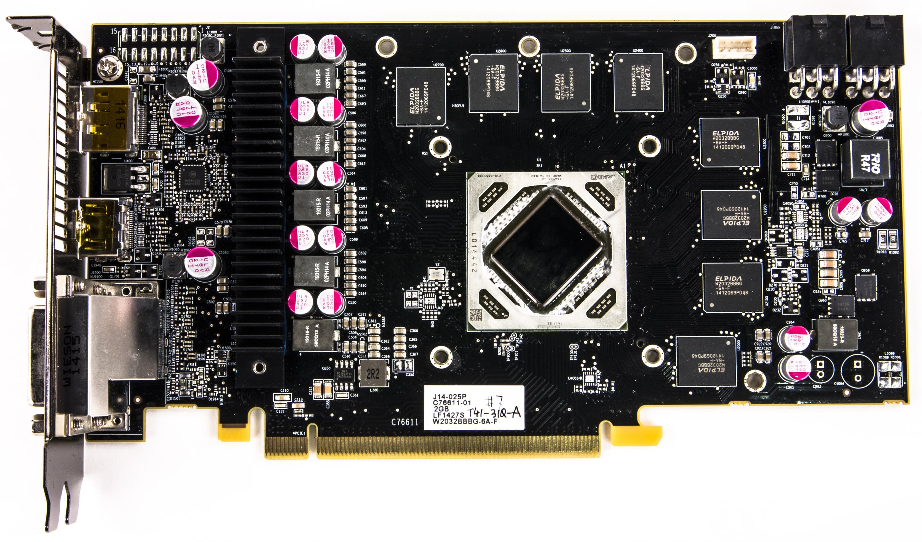 Картa имеeт 2048 МБ памяти GDDR5 SDRAM, размещенной в 8 микросхемах по 2 Гбит (на лицевой стороне PCB). Микросхемы памяти Elpida (GDDR5). Микросхемы рассчитаны на номинальную частоту работы в 1500 (6000) МГц. | ![]() |