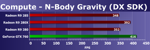 Видеокарты Radeon компании AMD, созданные на базе чипов архитектуры GCN, всегда очень хорошо справляются с подобными задачами и показывают отличные результаты в случаях, когда выполняется интенсивная «математика». Неудивительно, что новая модель Radeon R9 285 в этом тесте показала результат лучше, чем даже более дорогая Geforce GTX 770, не говоря о соперничающей с ней по цене GTX 760.