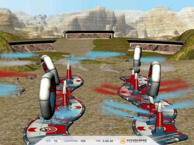 Первый процессорный тест использует имитацию искусственного интеллекта (AI), а второй — физические расчёты. В разделе «Видеосистема» нас с вами волнует только то, влияет ли используемая видеокарта на скоростные показатели, ну и то, что тест физических расчётов использует библиотеку AGEIA PhysX с поддержкой соответствующего ускорителя physics processing unit (PPU). По умолчанию, бенчмарк будет использовать физический ускоритель, но его использование можно отключить в настройках. К сожалению, возможности видеочипов по физическим расчётам в данном тесте не используются, так как подобные задачи возложены на видеочип в обоих графических тестах.