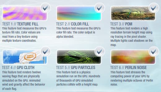 Тесты процессора должны по возможности отражать реальную игровую ситуацию, и при этом должны быть интересны пользователям визуально. Оба теста CPU также используют одинаковый графический движок, который используется в тестах GPU, но для снижения влияния мощности видеочипов, количество используемых эффектов максимально снижено, выключена вся постобработка, за исключением необходимого для HDR рендерера tone mapping. Также применяются значительно более простые шейдеры, используемые геометрические модели максимально упрощены, а рендеринг теней отключён.
