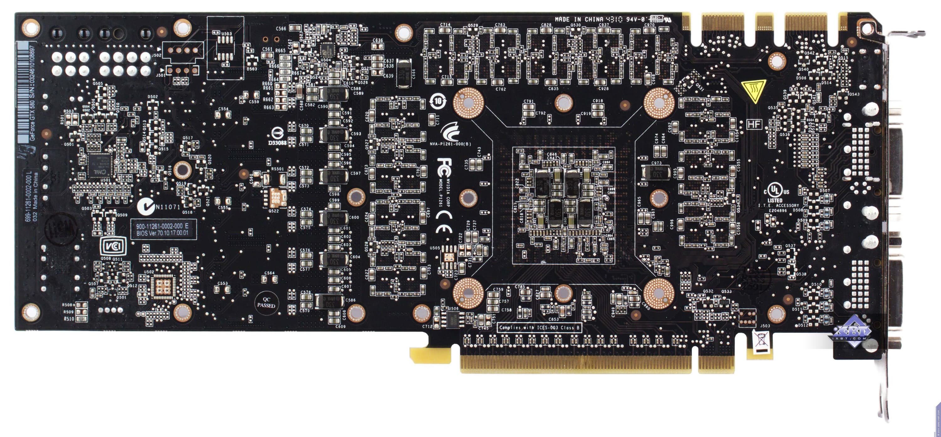 Карта имеет 1536 МБ памяти GDDR5 SDRAM, размещенной в 12 микросхемах на лицевой сторонe PCB. Микросхемы памяти Hynix (GDDR5). Микросхемы рассчитаны на максимальную частоту работы в 1250 (5000) МГц. | ![]() |
