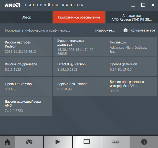 Давайте для начала рассмотрим все страницы новой панели настроек Radeon Settings. Стартовая страница показана на скриншоте выше, а на следующем показана страница проверки обновлений ПО — это сделано довольно удобно, хотя отдельную страницу для обновлений отдавать было не обязательно: