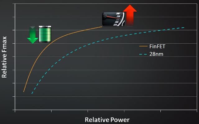 В итоге графические процессоры, произведённые при помощи техпроцессов с применением FinFET-транзисторов, обеспечивают фундаментальный рост характеристик производительности и энергоэффективности, по сравнению с аналогами, в производстве которых были использованы традиционные планарные транзисторы. По оценке специалистов AMD, применение FinFET-техпроцессов позволяет обеспечить или на 50-60% меньшее потребление энергии, или на 20-35% большую производительность при прочих равных (а если ещё добавить побольше транзисторов, что позволяют новые технологии, то разница будет ещё большей).