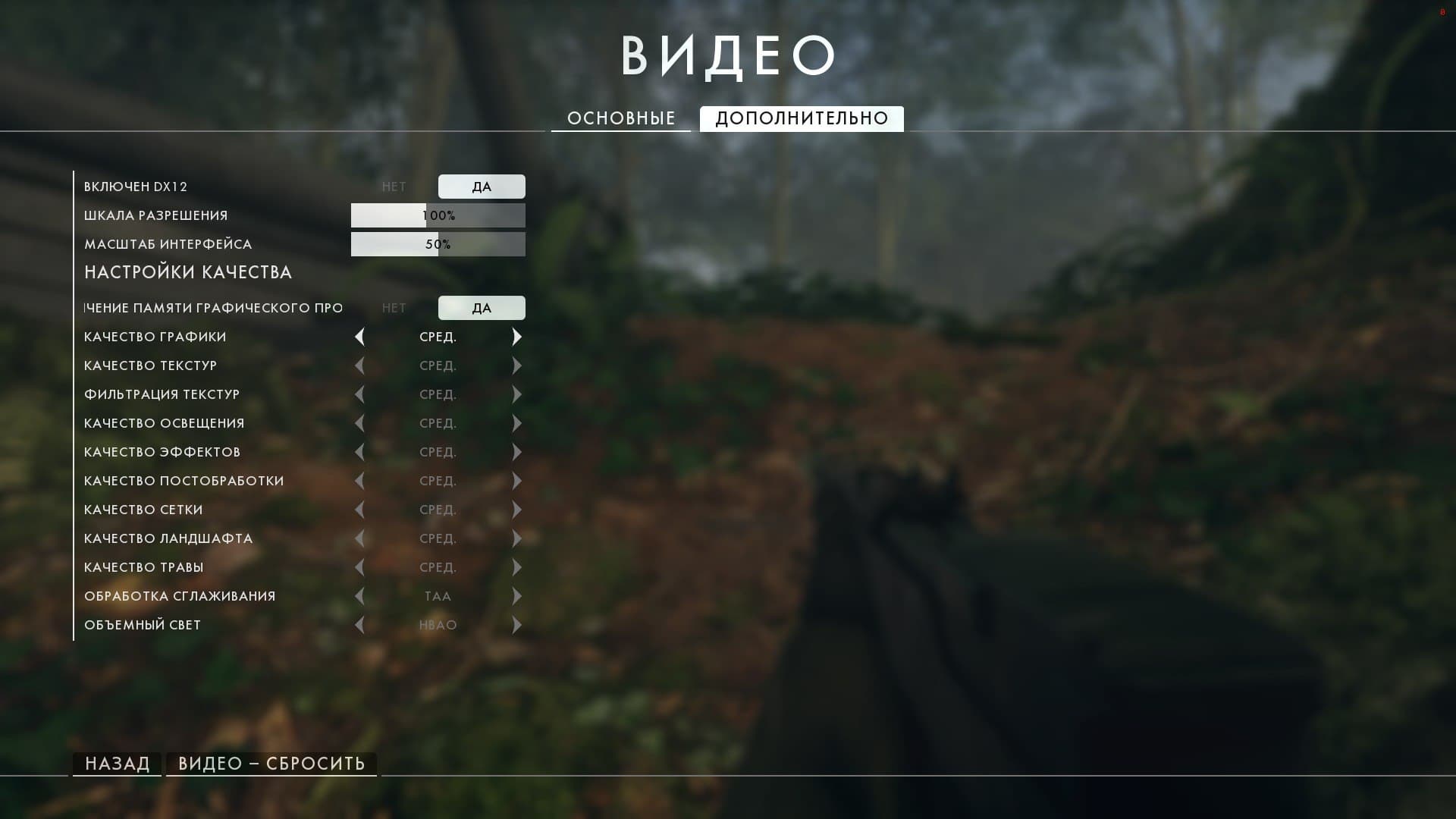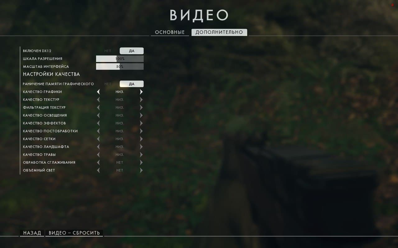 Настройки в игре