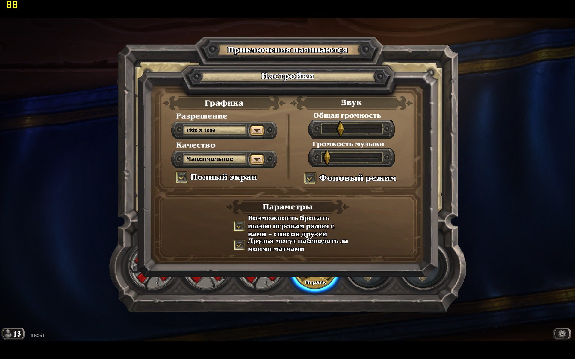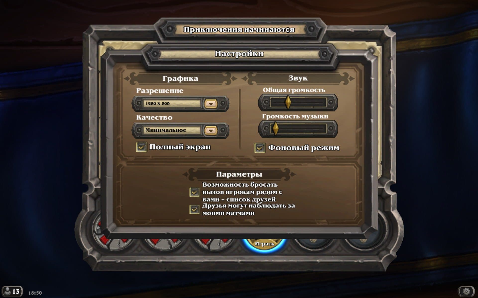 Настройки в игре