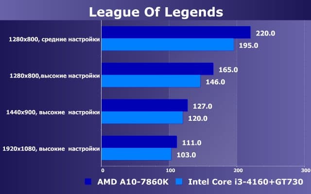 Этот цикл материалов посвящен тестированию современных популярных игр на платформах бюджетного уровня с интегрированной и дискретной графикой низшего ценового диапазона. Целью данного исследования является демонстрация читателям готовности или неготовности популярных из-за ценовой доступности конфигураций для использования в качестве игровых платформ нетребовательными игроками. Особо подчеркнем, что цикл ориентирован на покупателей готовых решений в виде офисных и дешевых домашних ПК и предлагает мало полезной информации для тех, кто желает обновить свой ПК (сделать апгрейд). Сегодня в качестве предмета исследований мы взяли игру League Of Legends. В сравнении участвуют две конфигурации: на базе APU AMD A10 (с интегрированной графикой Radeon R7) и на базе CPU Intel Core i3-4160 (с интегрированной графикой) + дискретная графика на базе GPU Nvidia GeForce GT730. По стоимости обе платформы находятся в одной ценовой нише.