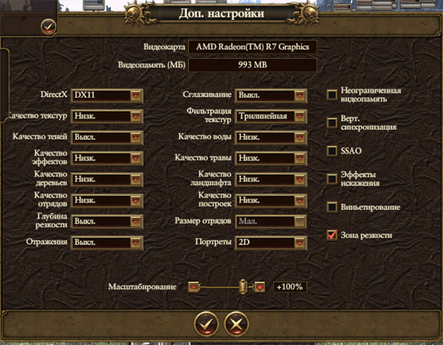 Настройки в игре