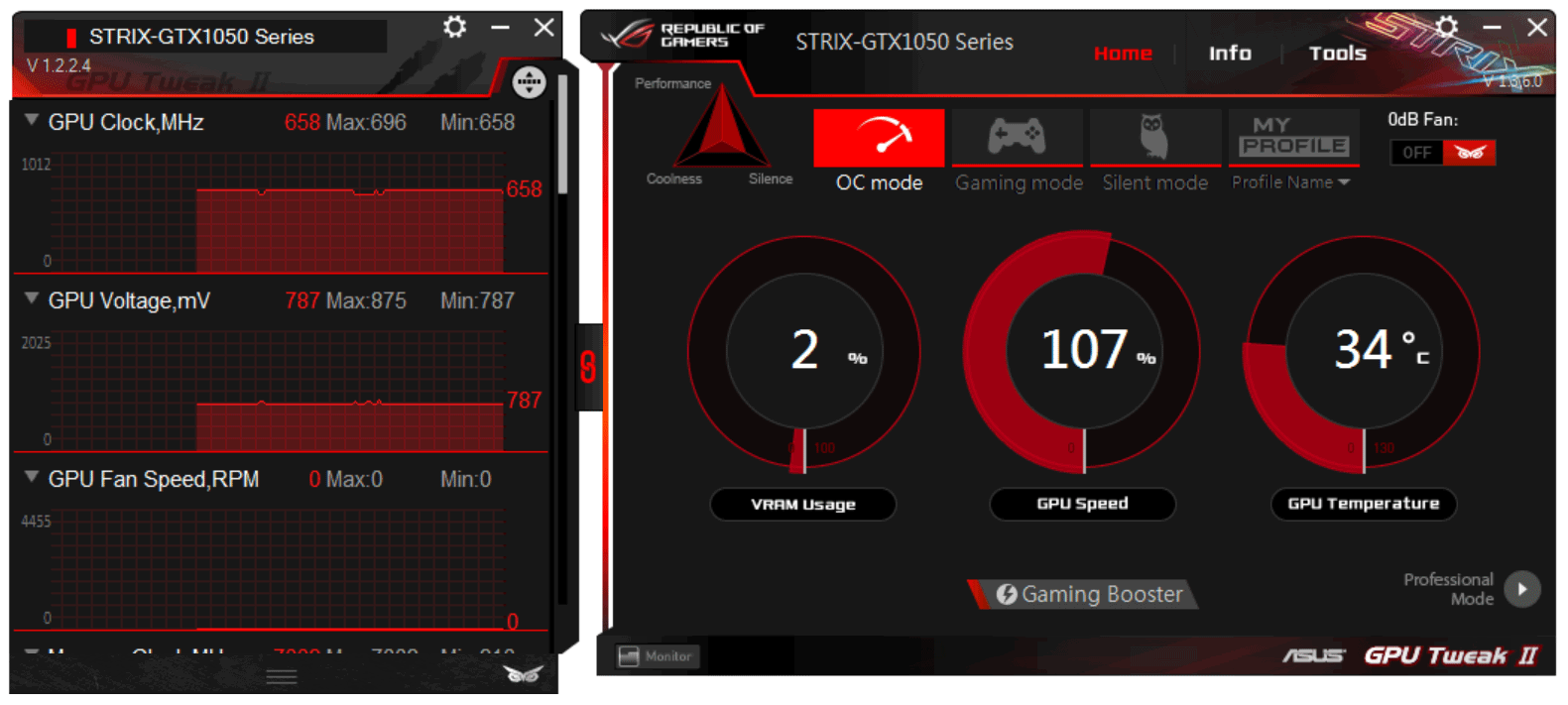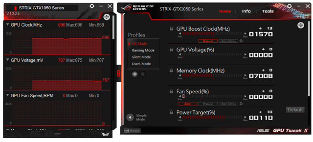 - Asus Strix GeForce GTX 1050 OC 2 ГБ 128-битной GDDR5