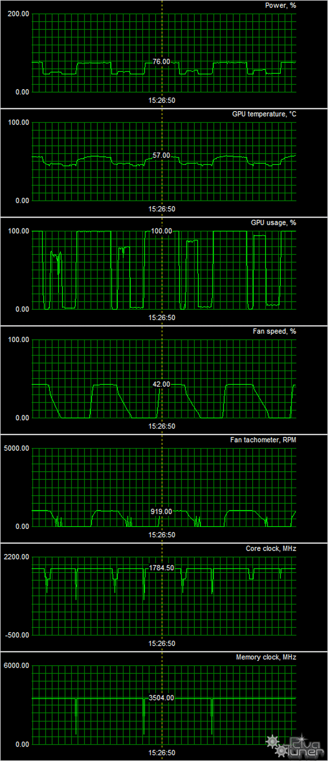 - Измерения проводились на расстоянии 50 см от видеокарты на уровне системы охлаждения.