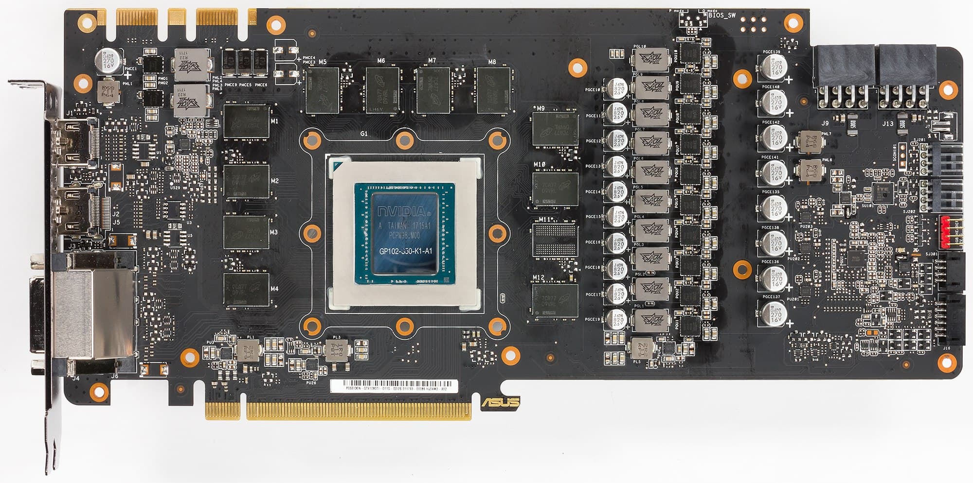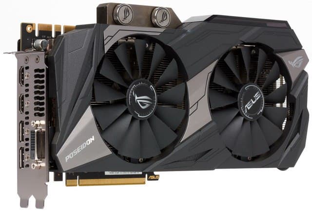 - Asus Poseidon Platinum GeForce GTX 1080 Ti 11 ГБ 352-битной GDDR5X
