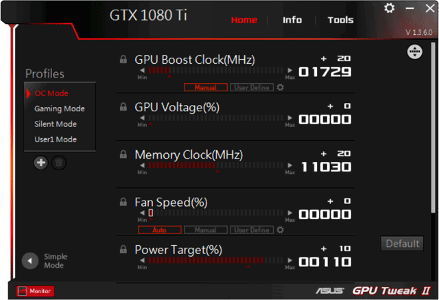 Asus Poseidon Platinum GeForce GTX 1080 Ti (11 ГБ) на момент написания материала — один из лучших (возможно, даже лучший) вариантов топового однопроцессорного ускорителя, демонстрирующий при использовании штатной воздушной СО производительность в среднем на 6%-7% выше, чем референсный GTX 1080 Ti. Карта имеет красивую подсветку на кулере для любителей моддинга, а также отлично подойдет любителям разгона, позволяя гибко и максимально эффективно регулировать частоты и напряжения. Штатная воздушная система охлаждения достаточно шумная, но карта предусматривает возможность монтажа ЖСО, что заодно должно повысить и без того неплохой разгонный потенциал. GTX 1080 Ti является на сегодня самым быстрым ускорителем, его штатной производительности более чем хватает для всех современных игр даже в разрешении 4K, так что карта Asus полностью готова для работы с устройствами VR.