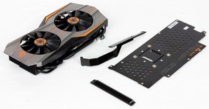 Базовый комплект поставки должен включать в себя руководство пользователя, диск с драйверами и утилитами. Мы видим базовый комплект плюс разветвители питания и фирменную наклейку. | ![]() |
