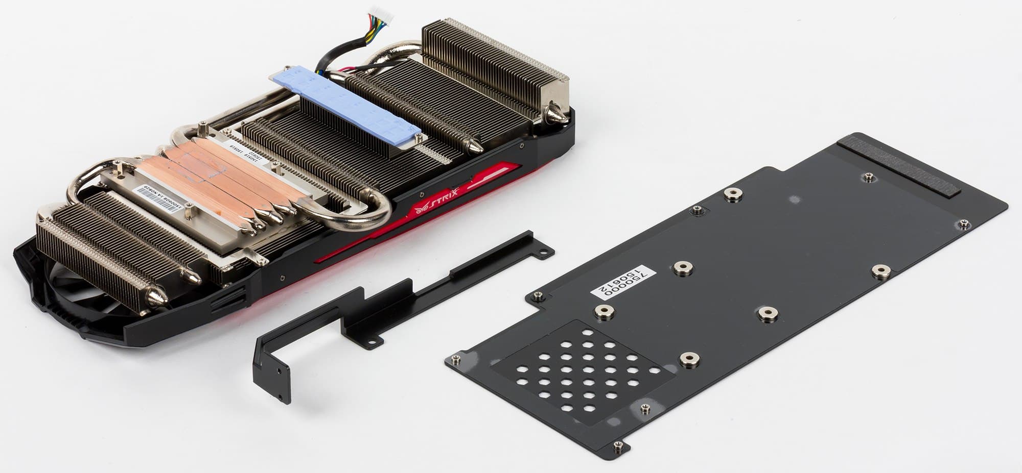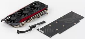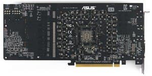 Плата является полной копией карты Asus на базе R9 390X, которую мы уже изучали. Стоит еще раз отметить, что схема питания имеет 8 фаз для ядра и 2 фазы для памяти и управляется цифровым контроллером Digi+ ASP1211, а при изготовлении платы применяется технология Super Alloy Power II, что вкупе с использованием специальных конденсаторов уменьшает энергопотребление и нагрев.