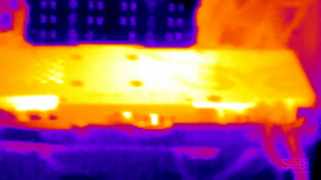 - Измерения проводились на расстоянии 50 см от видеокарты на уровне системы охлаждения.