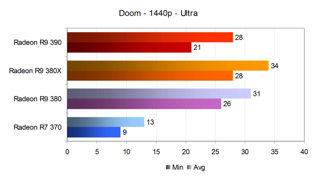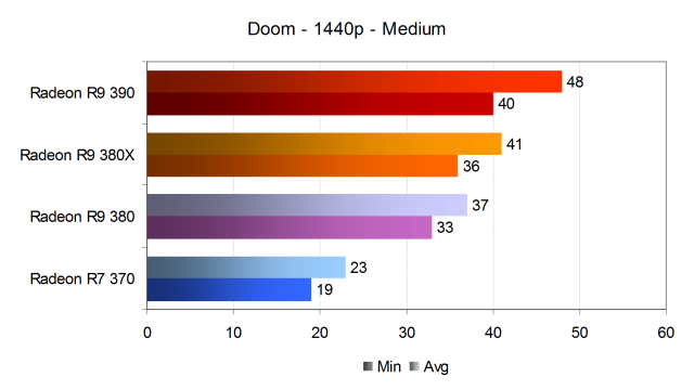 При установке более высокого разрешения рендеринга в 2560×1440 пикселей, производительность решений компании Sapphire в игре очень серьёзно снизилась. Младшая модель Radeon R7 370 всё так же весьма далека от играбельного уровня, в этот раз к ней присоединилась и Radeon R9 380, обеспечившая 37 FPS в среднем, хотя и при 33 FPS минимальных — этого слегка маловато для комфортной игры, так как в игре будут попадаться более массовые сражения с ещё меньшей частой кадров. Так что будет лучше снизить настройки ниже среднего уровня.