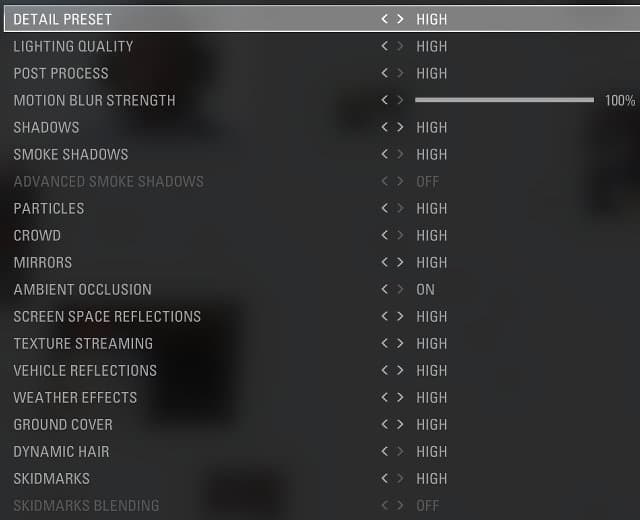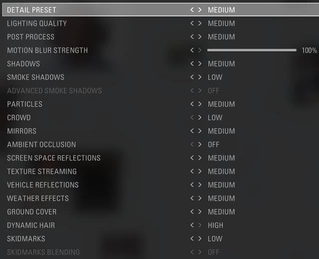 Изменение качества текстурной фильтрации в параметре Anisotropic Filtering на современных системах практически не влияет на итоговую скорость, в случае Radeon R9 380 можно получить всего лишь 1 FPS дополнительно. А так как качество фильтрации текстур очень сильно сказывается на отрисованной картинке в целом, и на поверхности трассы в частности, мы бы очень не рекомендовали снижать эту настройку в игре со значения 16x.
