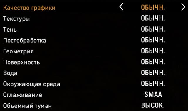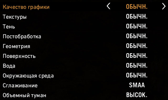 Следующий параметр качества — Окружающая среда. Эта настройка отвечает за количественные и качественные параметры при отрисовке различных объектов игрового мира. Возможна установка в два значения: «Обычное» и «Высокое», и разницы между ними по производительности на тестовой системе мы не обнаружили — а значит, эту настройку можно рекомендовать оставлять на высоком значении.