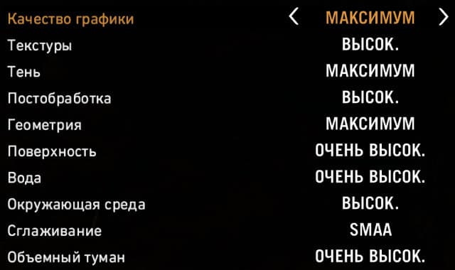 Ну и последний параметр — Объемный туман, он изменяет качество того самого объемного освещения и атмосферы в пределах от «обычного» качества до «очень высокого». Влияния этого параметра на частоту кадров на тестовой системе мы не обнаружили, а на качестве рендеринга этот эффект сказывается достаточно сильно, и он важен для создания игровой атмосферы. Так что мы бы не советовали снижать его никогда, кроме тех редких случаев, когда вам на очень слабой системе сильно не хватает производительности.