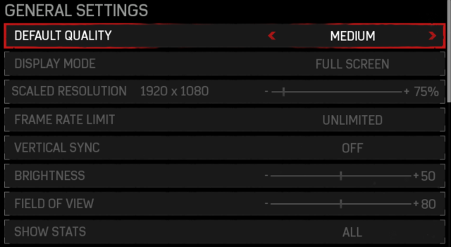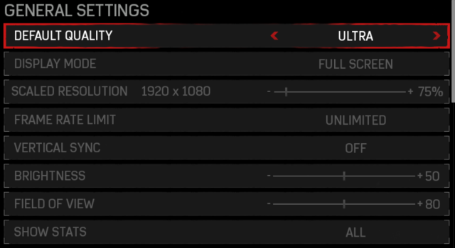 На системе с мощной видеокартой можно выставить настройки Ultra, запустить бенчмарк и постепенно снижать их, если производительности недостаточно (средний FPS ниже 45 кадров в секунду). Если же нужна еще более высокая производительность, то к уровню Medium нужно спускаться осторожнее, так как некоторые параметры слишком заметно ухудшают качество изображения — придется определять, какие из эффектов вам менее важны. Вполне возможно, будет даже правильнее воспользоваться встроенной возможностью динамического изменения разрешения Dynamic Resolution Scaling, которое снизит качество исключительно в моменты с недостаточной производительностью.