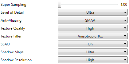 Во внешнем конфигураторе можно изменить все настройки: рендерер, разрешение экрана, параметры вертикальной синхронизации и выбрать несколько дополнительных настроек качества изображения. Увы, в игре нет предустановленных профилей, как мы привыкли, и пришлось их придумывать самостоятельно: Medium, High и Ultra: